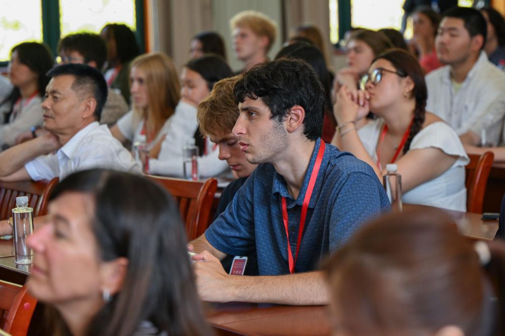 ▲2025年7月28日,在湖北省黄冈市红安县,美国飞虎队夏令营代表团成员观看纪录片《飞虎情缘》。新华社记者 杜子璇 摄