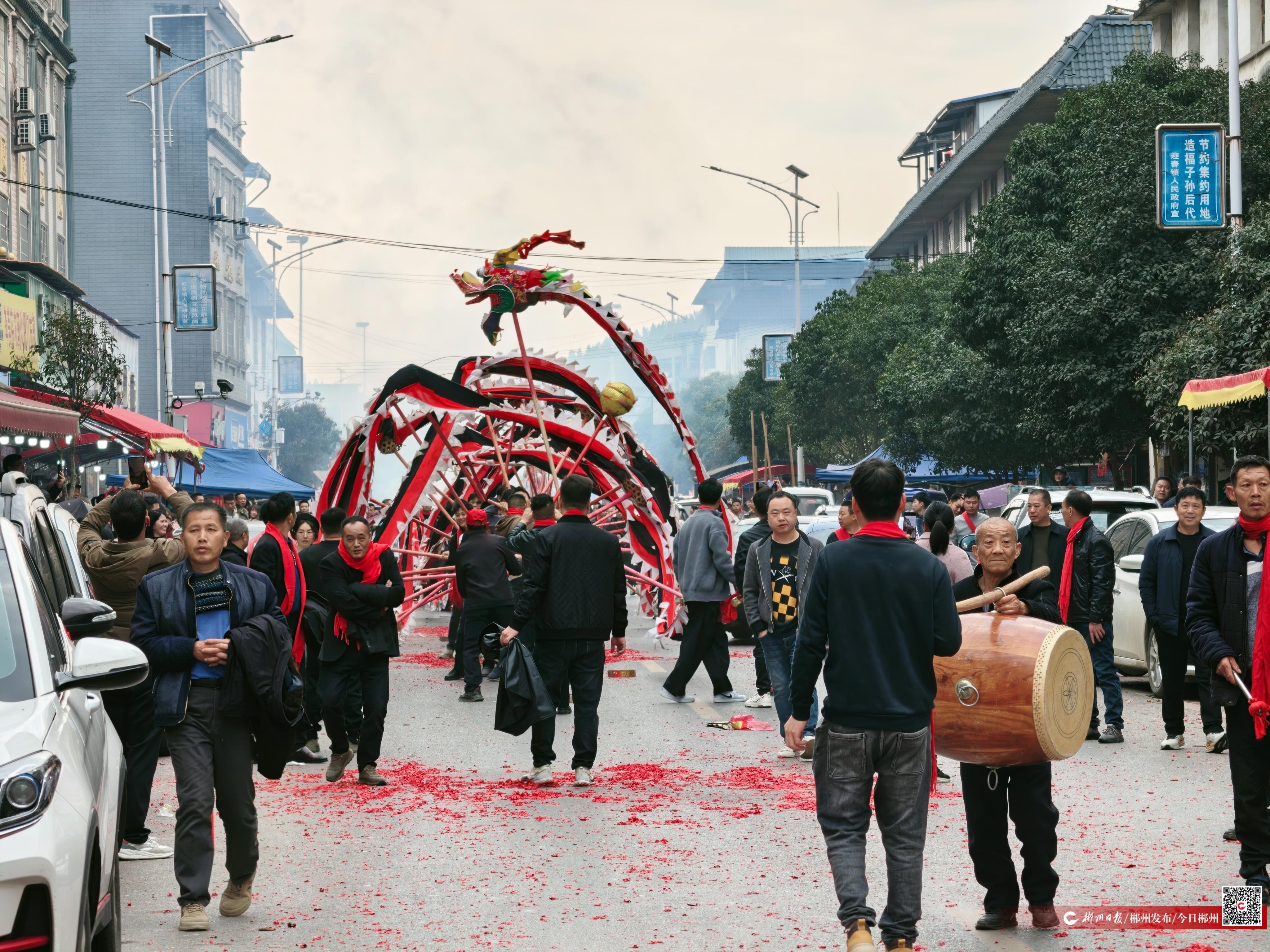 活动现场,彩龙翻腾穿梭、气势磅礴,伴随着铿锵锣鼓与阵阵喝彩,尽显传统民俗魅力。