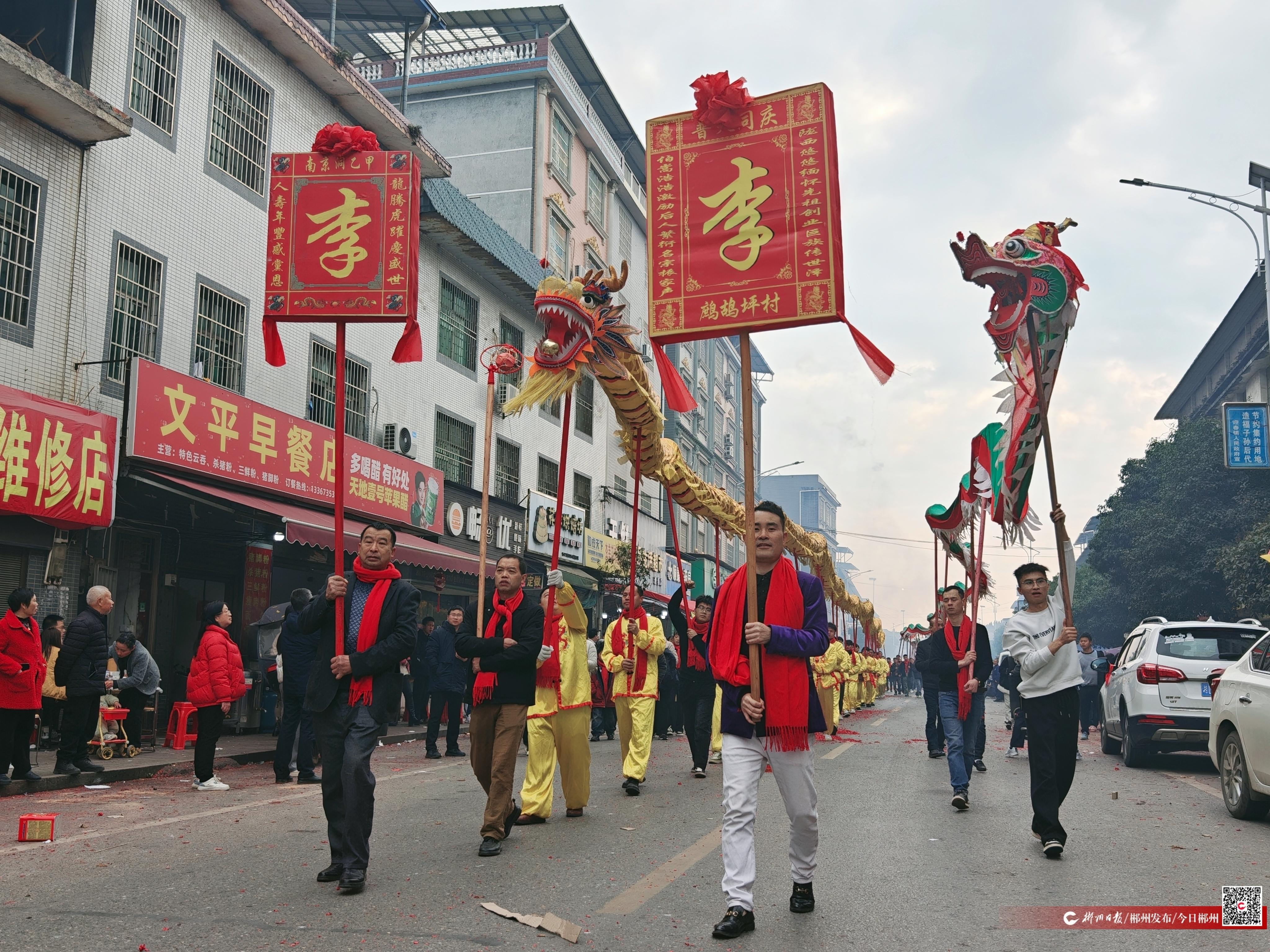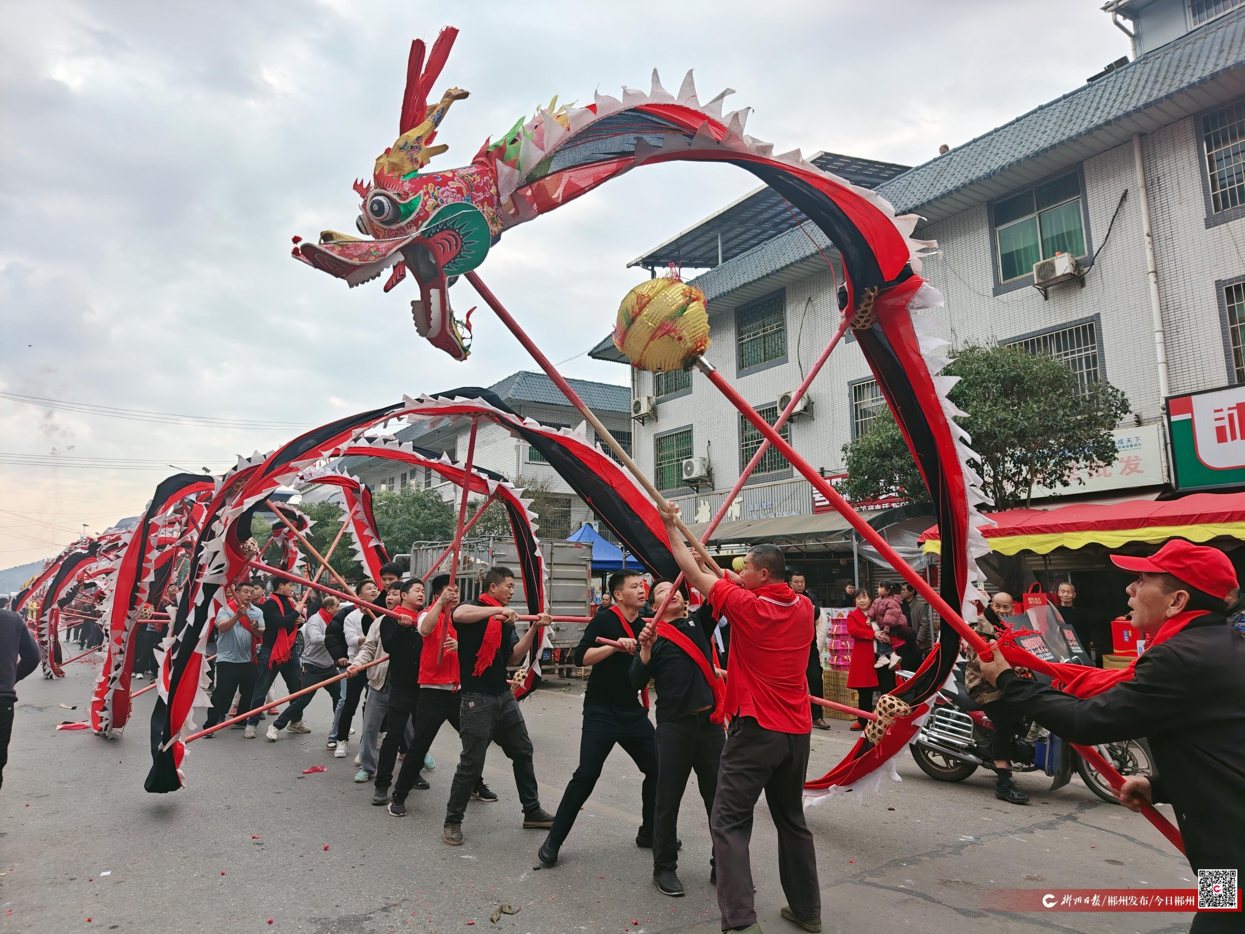 2月21日,大年初五,新春氛围正浓,宜章县迎春镇鹧鸪坪村锣鼓喧天、热闹非凡。