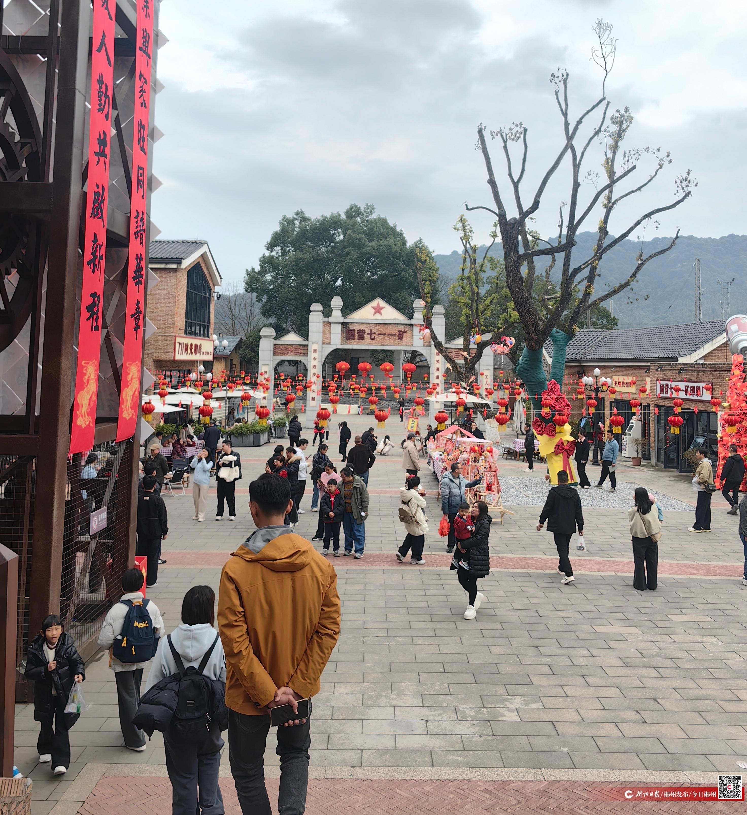 2月21日,农历正月初五,苏仙区711时光小镇张灯结彩,人流如织。一场别开生面的新春游园会正在这里上演,将人们拉回到那段激情燃烧的岁月,也让游客在怀旧与创新的交融中感受别样年味。