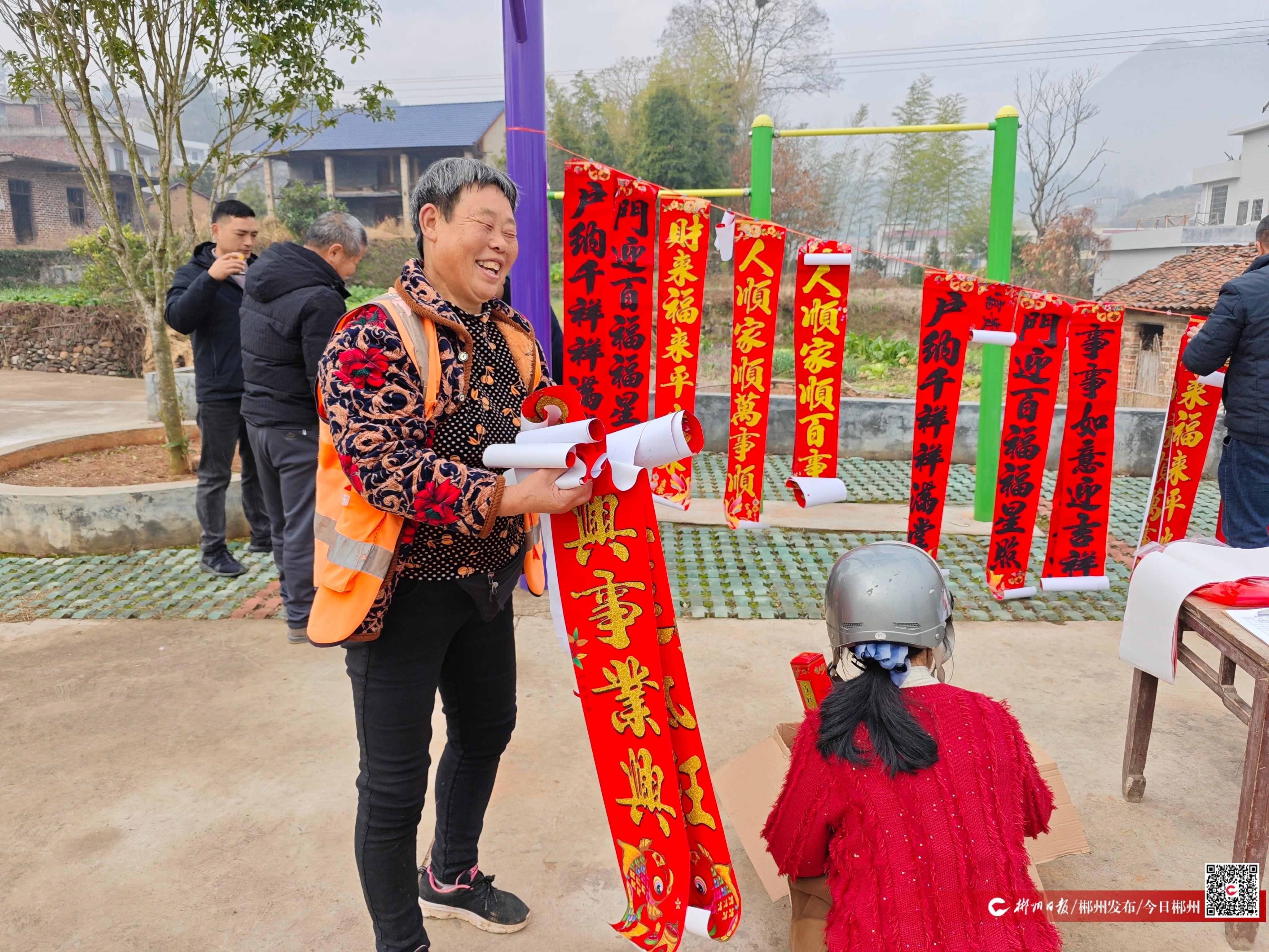 一份是“喜庆”的祝福。春节前,在消湾村村委会院子里,一场免费送春联活动热闹开展。退休老教师挥毫泼墨,一副副寓意吉祥的春联跃然纸上。老党员、困难群众和老人欢聚一堂,对于行动不便的高龄老人,村干部更是主动将春联和“福”字送上门,并帮忙张贴。活动当日送出春联50余副、“福”字120个。
