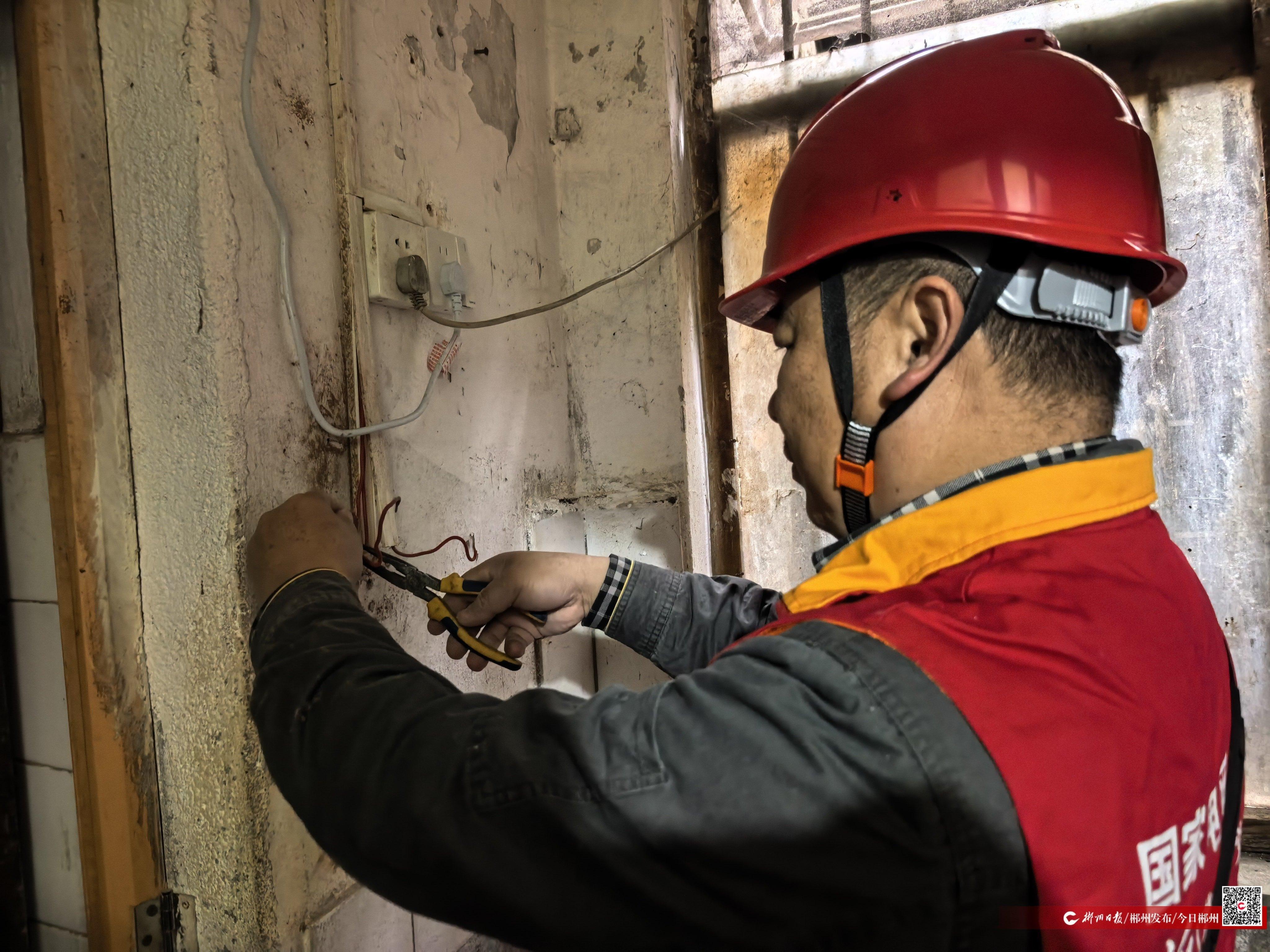 在84岁老矿工欧阳映家中,志愿者们发现老人厨房、卫生间灯泡时亮时灭,立即对线路进行全面检修,更换了新开关。欧阳映有着37年矿工工龄,独居且年迈多病,看着重新明亮的灯光,老人紧紧握住志愿者的手表达谢意。