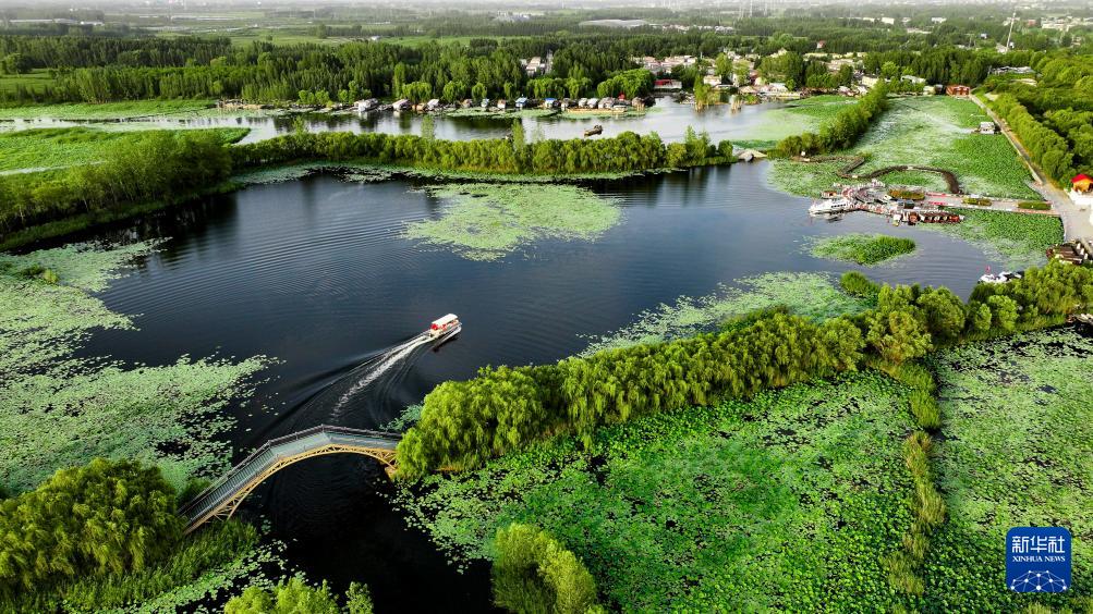 ▲山东省济宁市微山县微山湖二级坝湿地公园景色。(图/新华社)