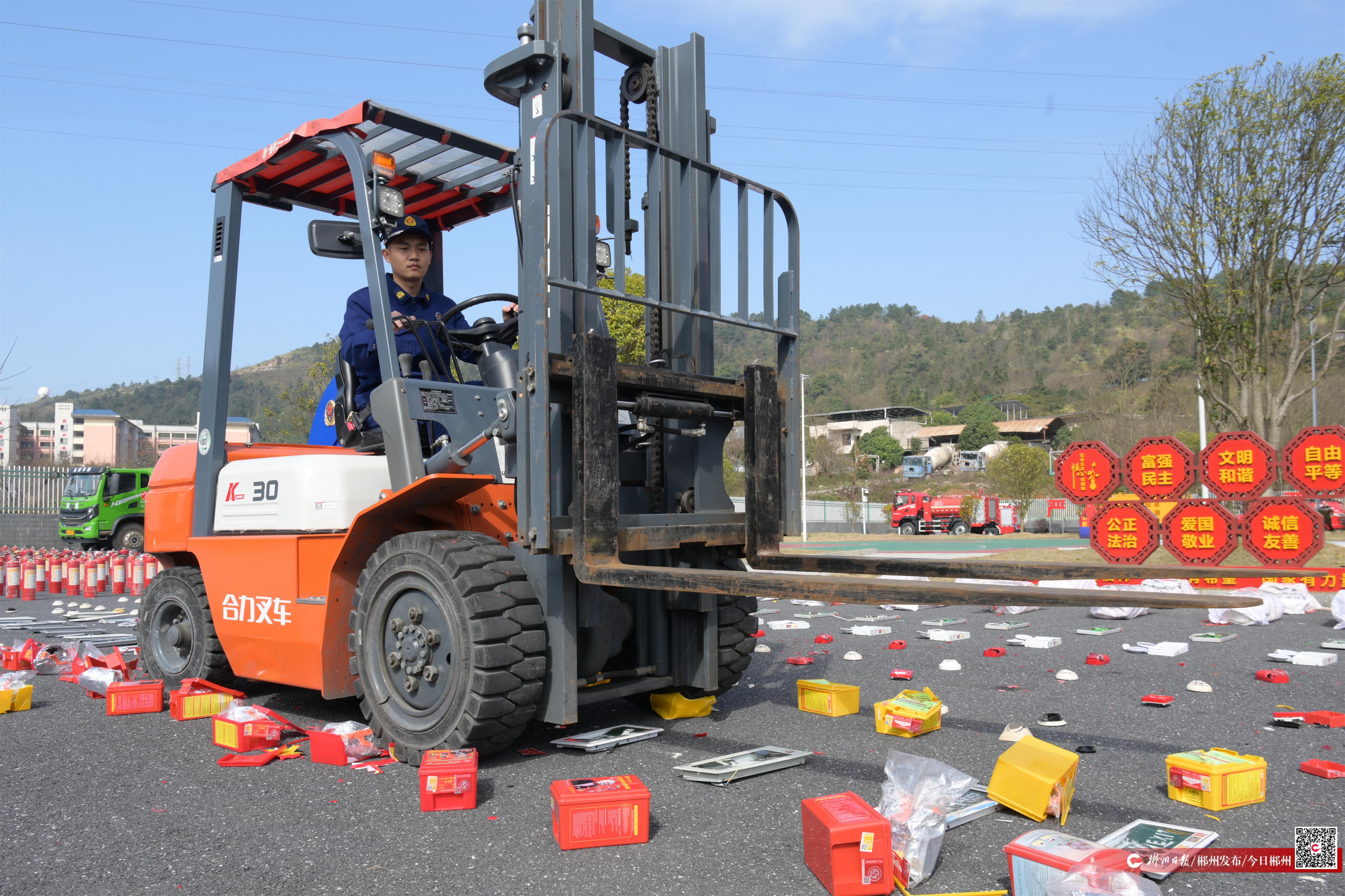3月11日,郴州市消防救援局联合市场监管、公安等部门,对18吨假冒伪劣消防产品进行了集中销毁。