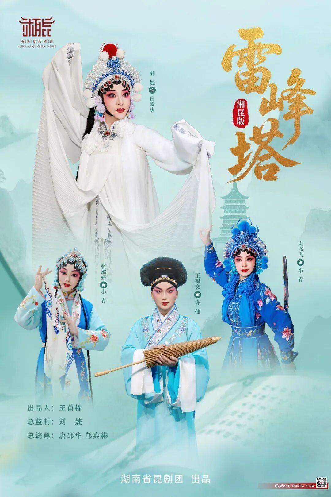 全本《雷峰塔》文武并重、行当齐全,集昆曲“生、旦、净、末、丑”各行当表演艺术与“唱、念、做、打、舞”全方位技艺于一身,被业内视为衡量剧团艺术功力的“试金石”。该剧由一级演员刘婕领衔主演白素贞,王福文、张璐妍、史飞飞、凡佳伟等优秀演员联袂出演,通过《断桥》的细腻文戏与《水斗》的凌厉武戏,展现湘昆刚柔并济、文武兼备的鲜明风格。