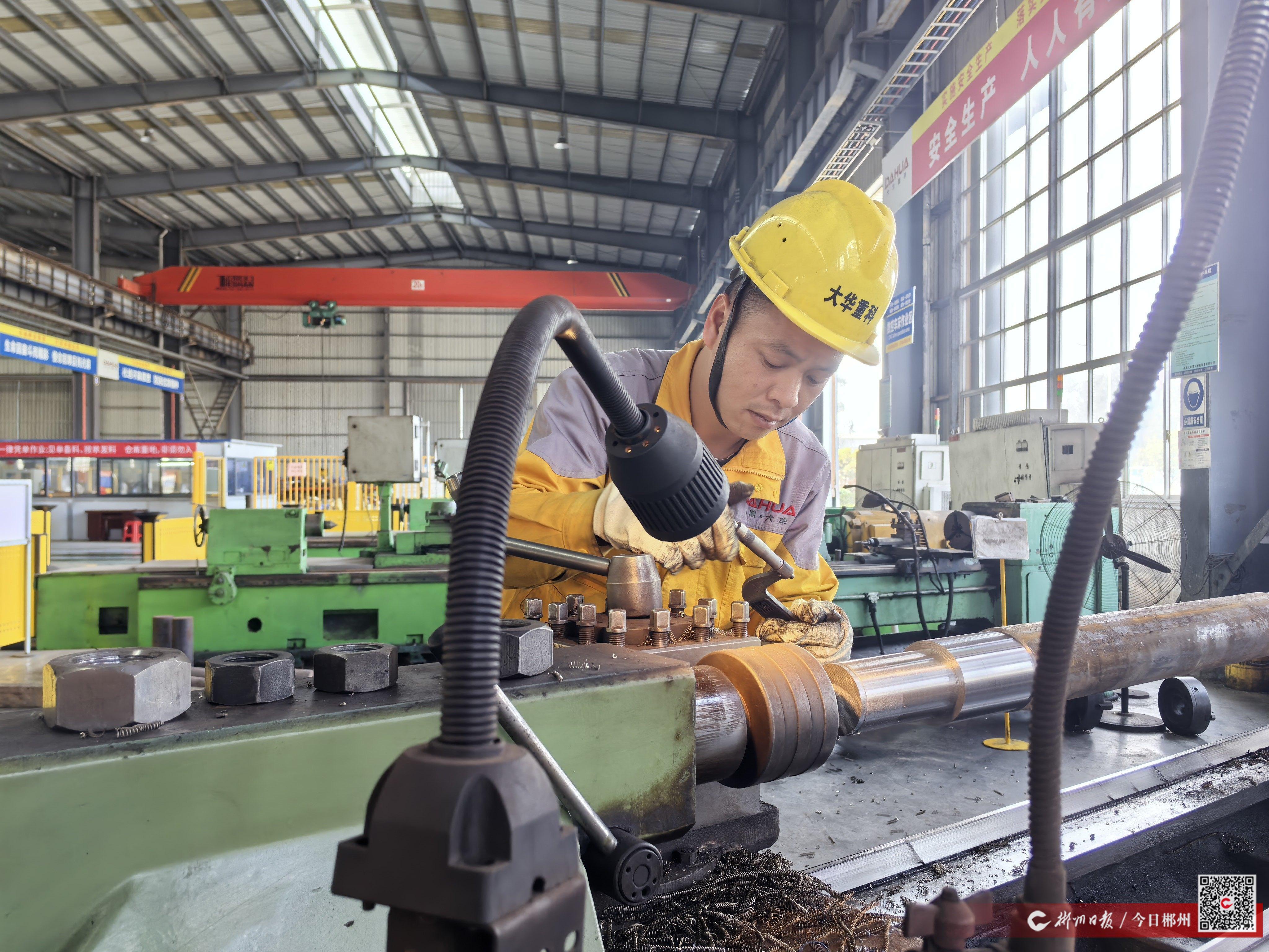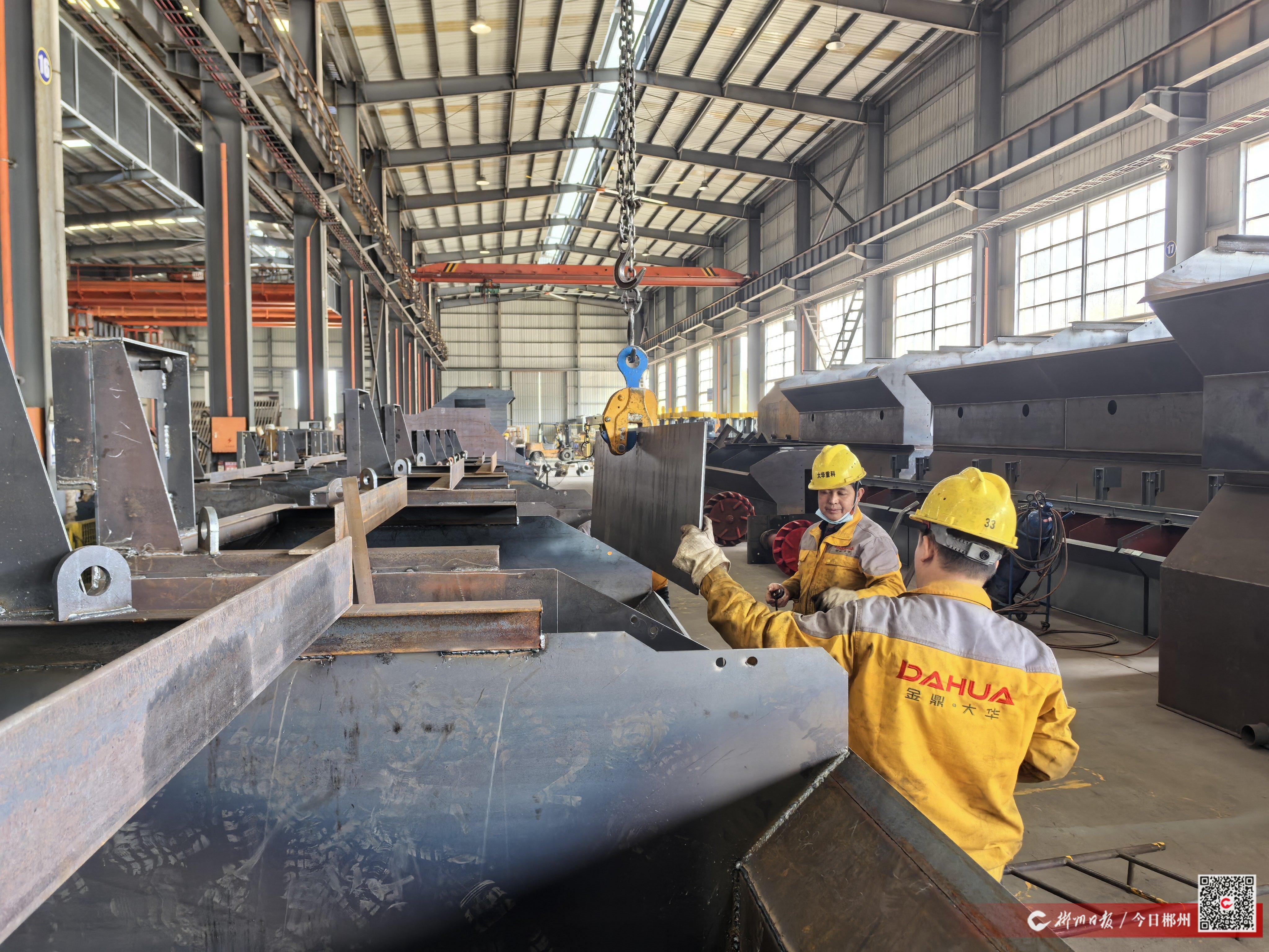 湘南三月,春潮涌动。位于桂阳高新区的湖南大华重科智能装备有限公司生产车间内,大型镗床高速运转,自动化激光切割机火花四溅,工人们正紧张地组装着即将发往非洲的球磨机筒体。
