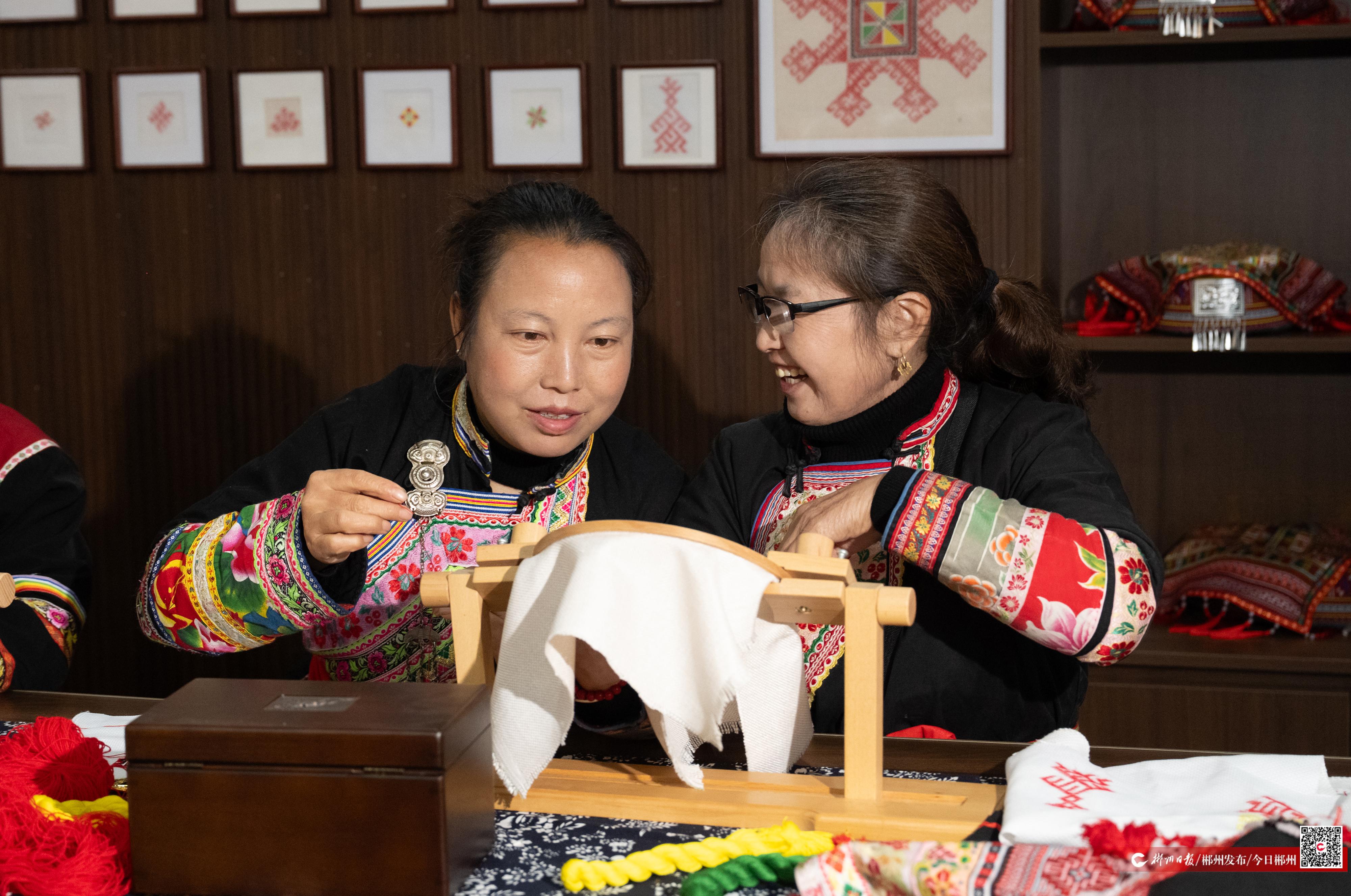3月19日,在资兴市回龙山瑶族乡二峰村瑶绣工坊内,村民在制作瑶绣饰品。近年来,该村大力发展瑶绣、农产品加工、电商等特色产业,不断壮大村集体经济,助力当地农民增收致富。
