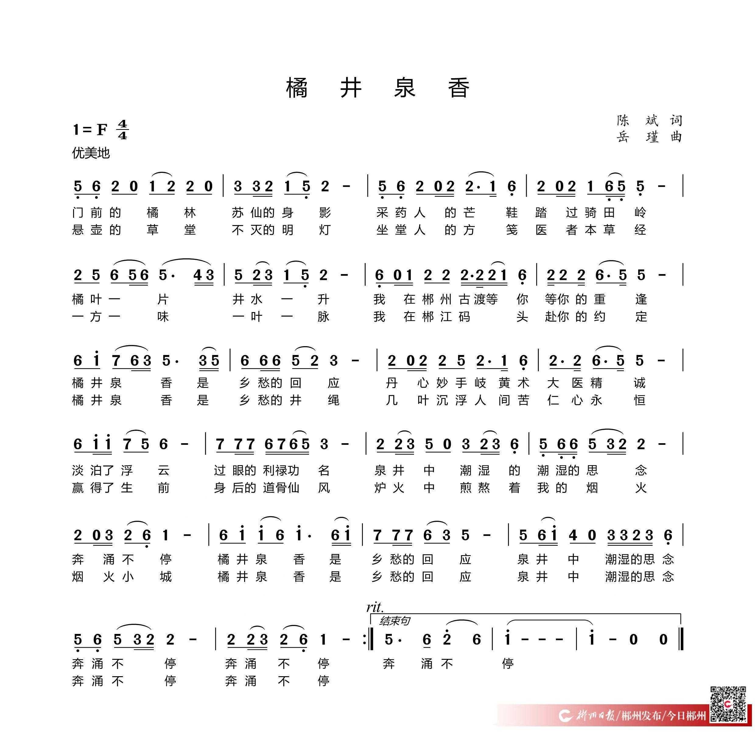 △歌词类一等奖作品《橘井泉香》