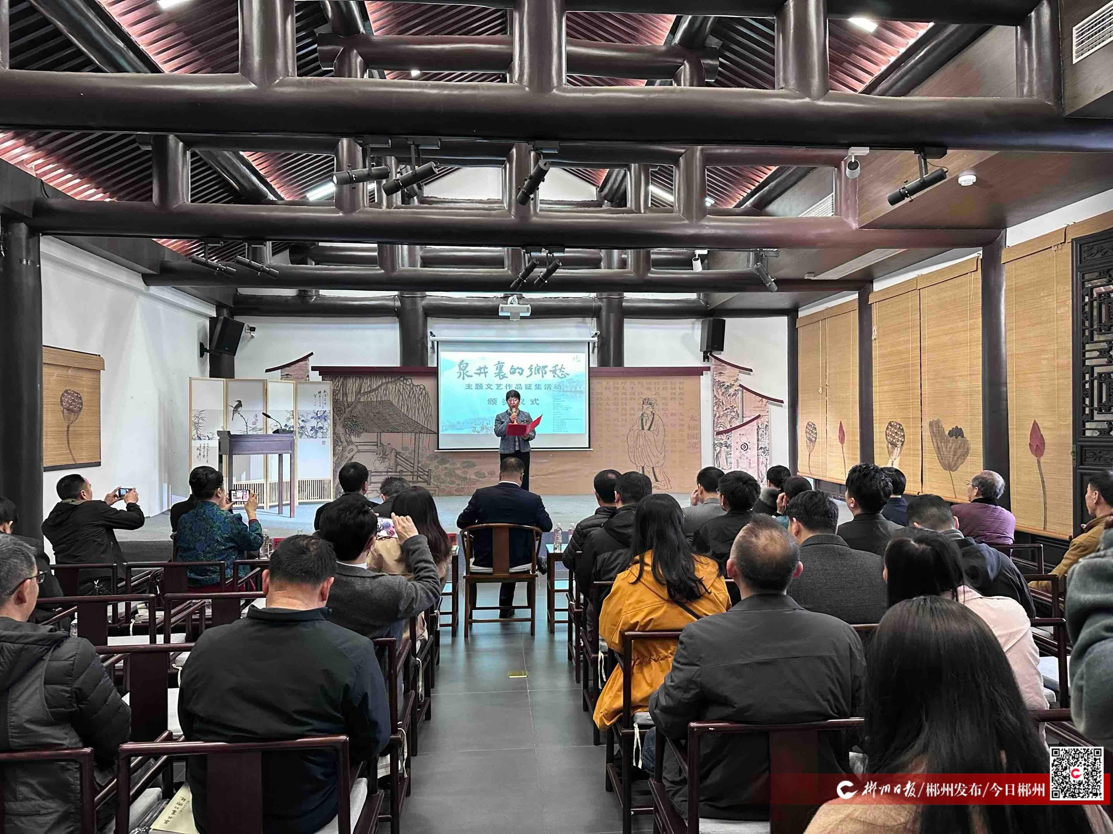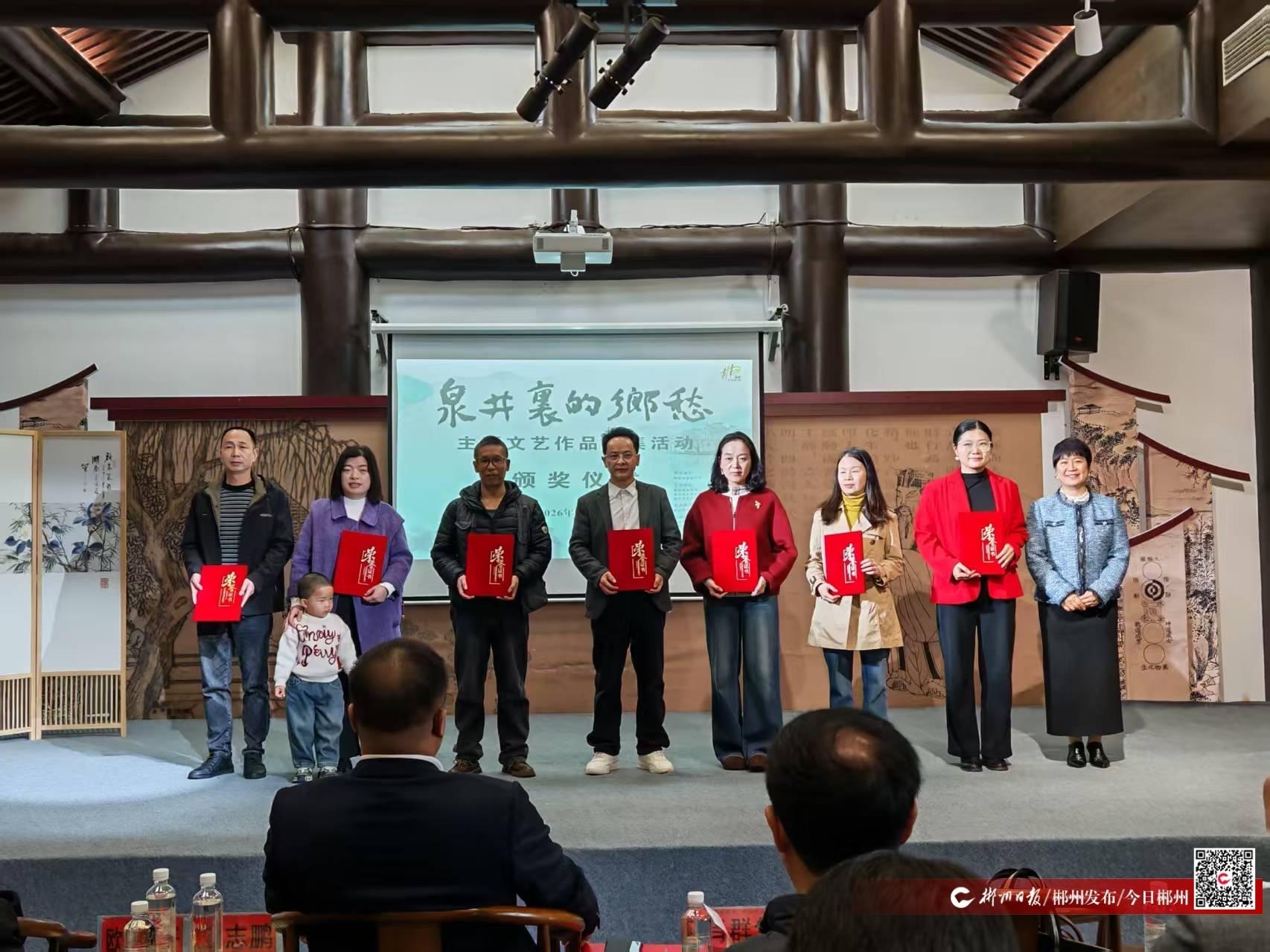 3月22日上午,“泉井里的乡愁”主题文艺作品征集活动颁奖仪式在爱莲湖濂溪书院举行。现场对评选出的62件优秀作品进行了集中表彰,获奖代表与市民朋友齐聚一堂,共同感受郴州水文化的深厚底蕴与时代活力。