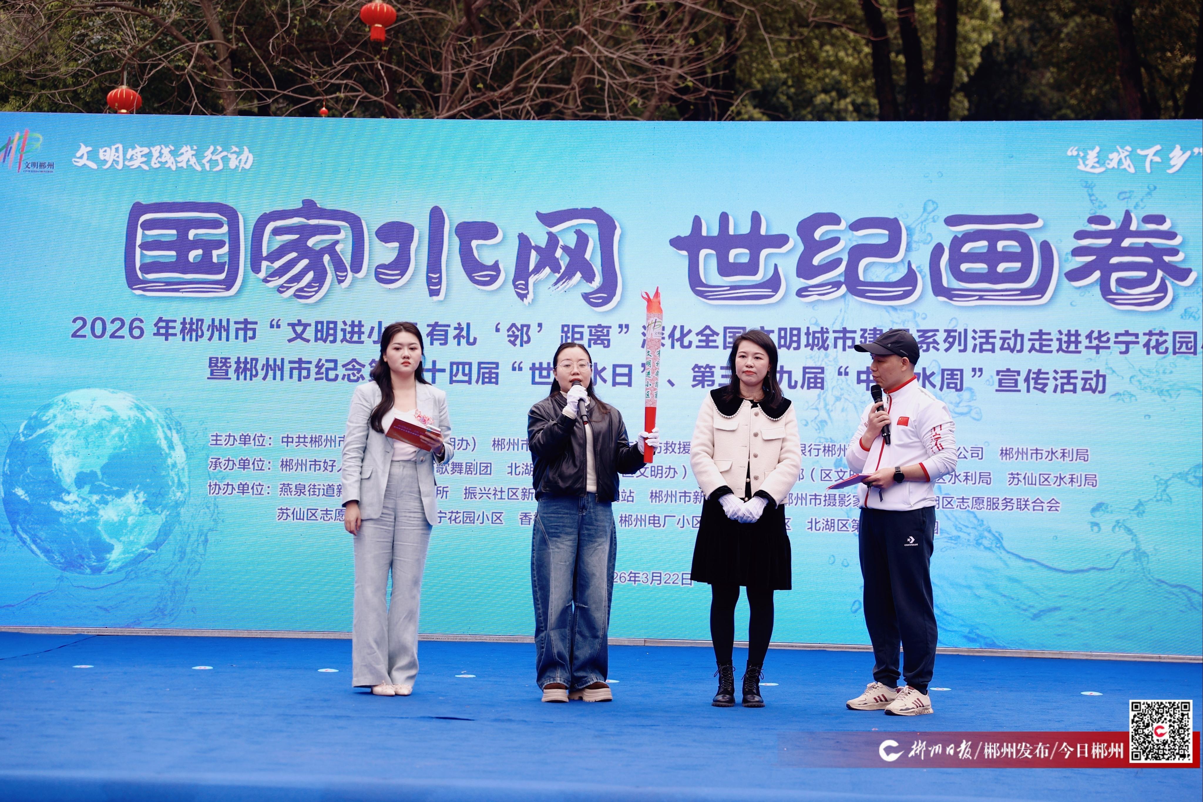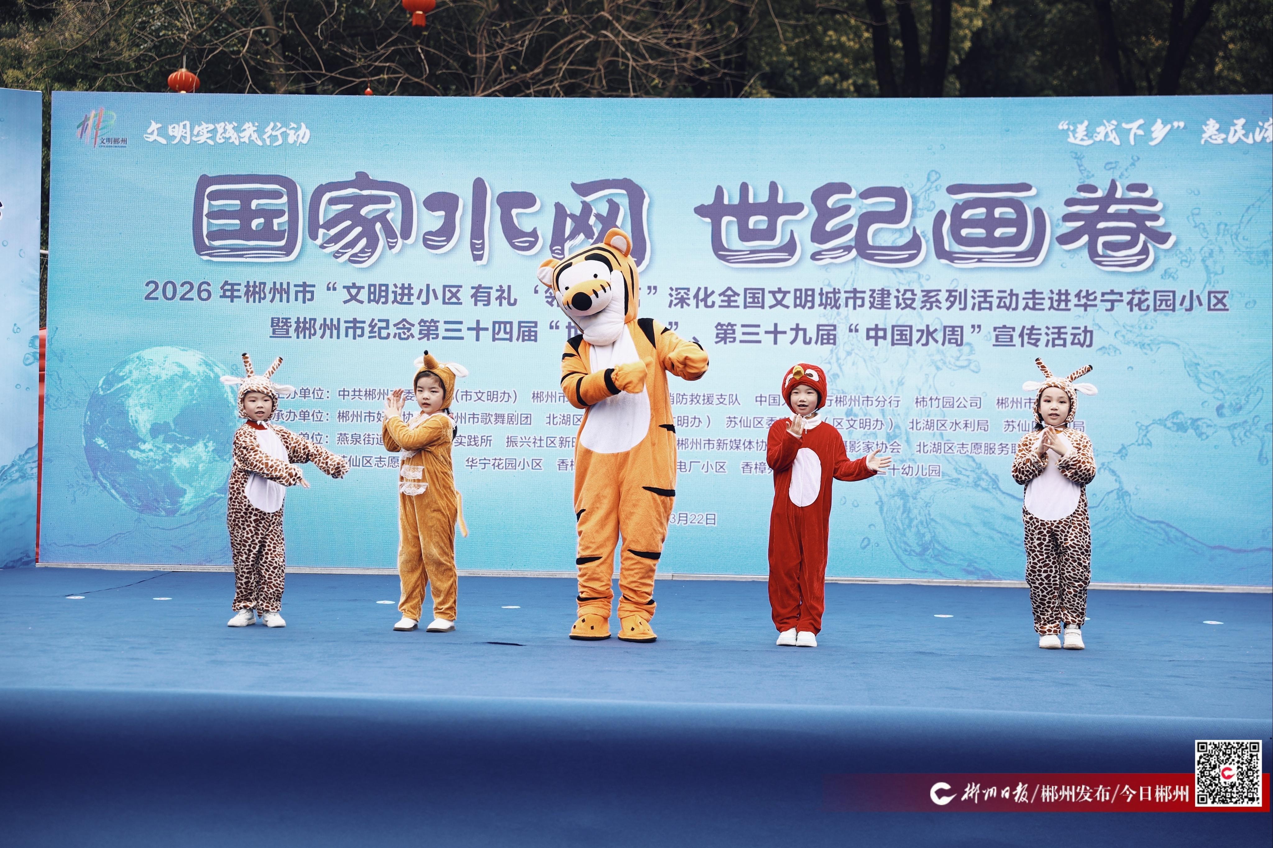 随后,“文明大舞台”精彩启幕,暖场视频《文明郴州disco》率先点燃现场氛围,6支社区文艺队伍同台献艺,互动游戏“消防抓呀抓”趣味横生,集体生日会、读家书环节温情流淌,好人故事微宣讲传递正能量,文明火炬交接彰显文明传承的力量。