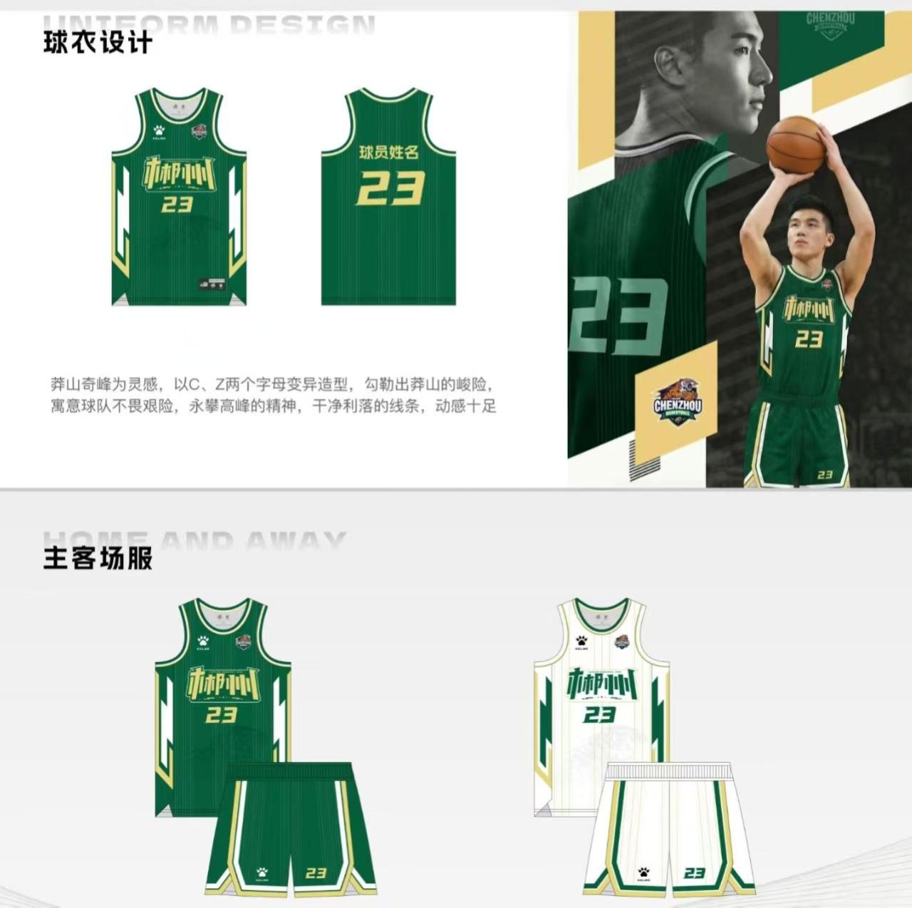 郴州队队服:以绿色为主色呼应生态之城,搭配虎纹图案,取“林中之城,虎虎生威”之意。
