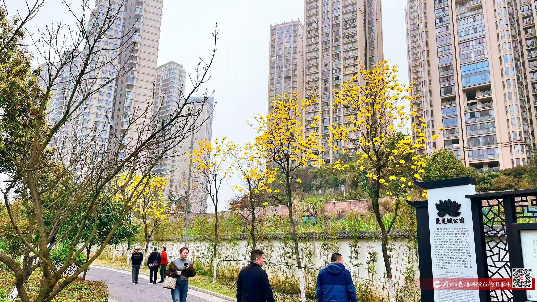 阳春三月,郴州爱莲湖畔生机盎然。6株珍稀黄花风铃木迎来盛花期,满树金黄缀满枝头,串串花穗如风铃摇曳,成为爱莲湖畔亮眼的春日景致。这6株黄花风铃木目前为郴州城区独有,其他路段和公园均未栽种。