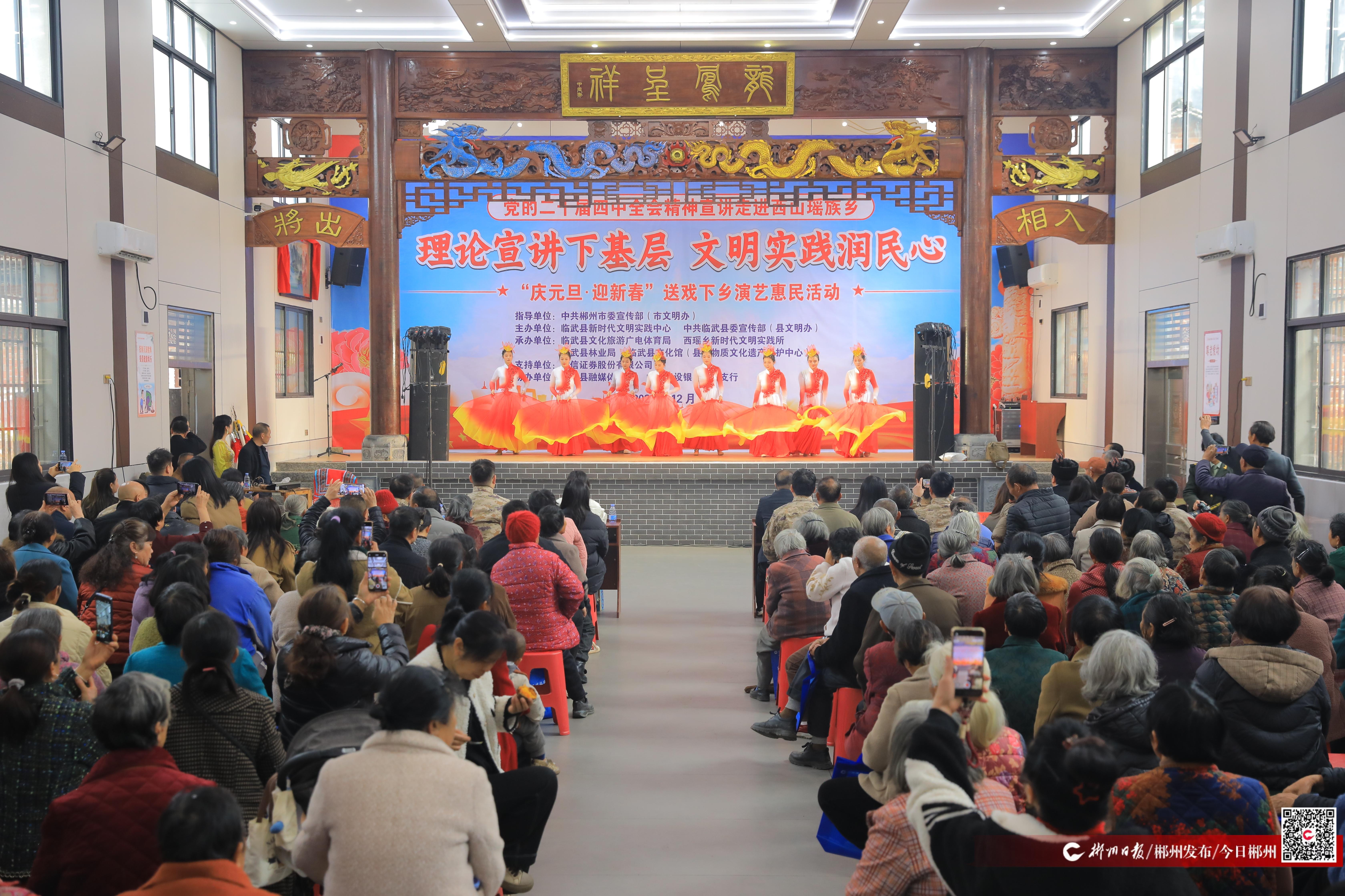 ▲2025年12月30日在西瑶乡寺湾村新时代文明实践站举行“庆元旦迎新春”送戏下乡演艺惠民活动 (临武县委宣传部(县文明办)供图)