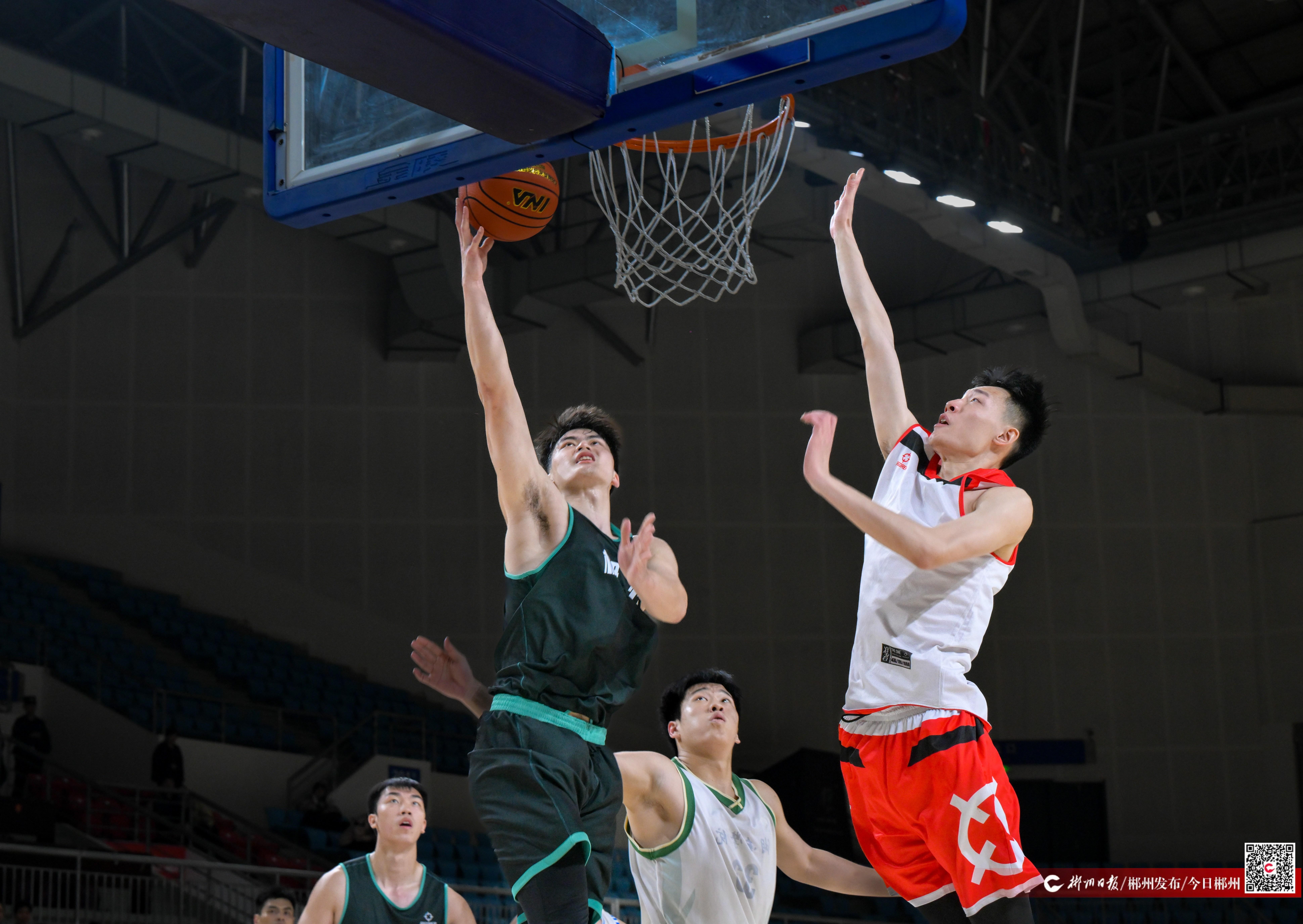 3月26日晚,2026湖南省城市篮球联赛(湘BA)郴州赛区测试赛在郴州市体育中心体育馆举行,郴州队与郴州明星队展开对决。