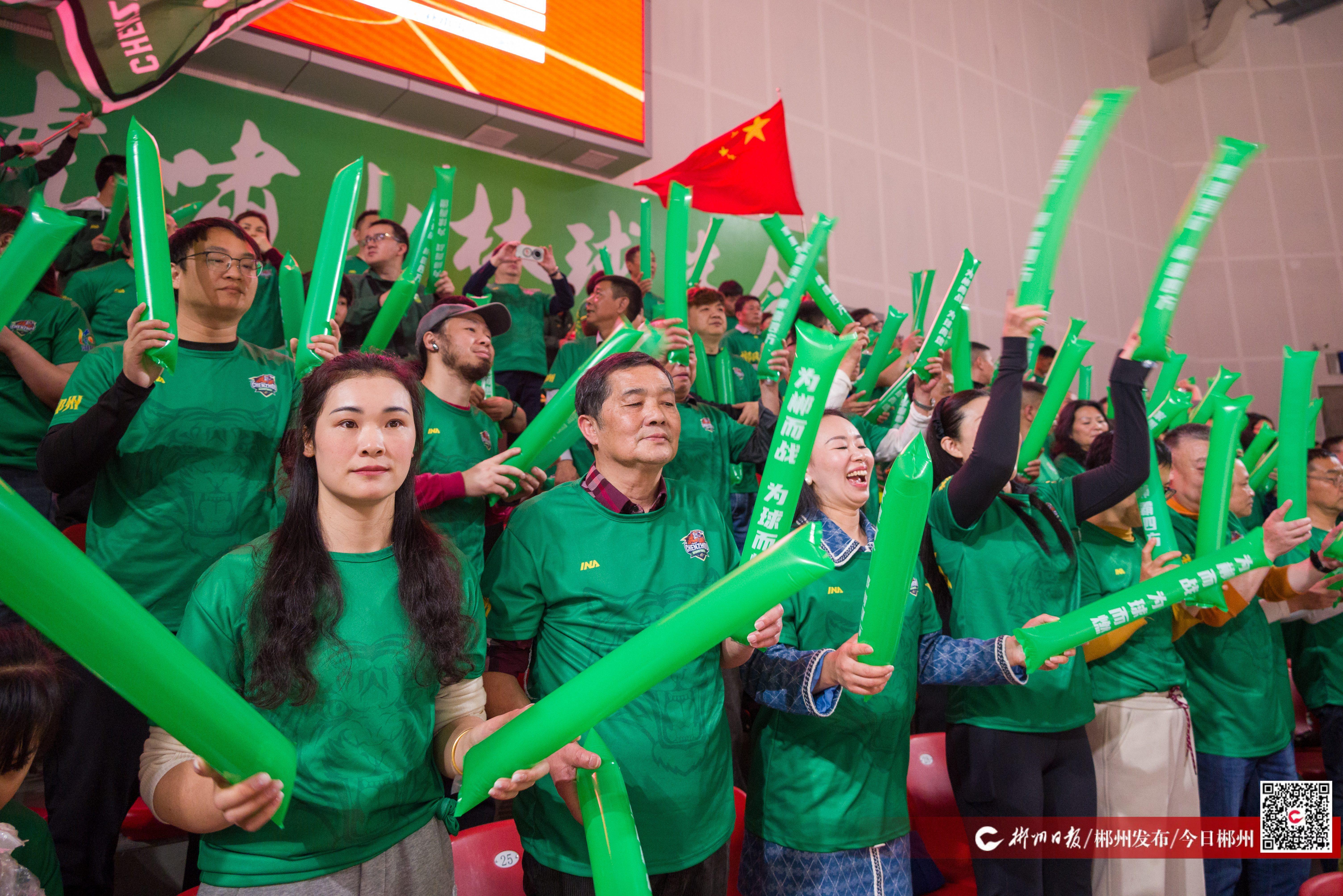 赛后,学生领队张超旭和伙伴们挤到球员通道旁,终于等到了和球员击掌的机会。忙了一晚的他们边欢呼边跳跃:“郴州队太棒了!真的太棒了!”湘南学院体育学院80名大一新生穿着统一的志愿服,成了赛场边最温暖的注脚:检票时他们微笑着引导观众扫码、验票,遇到拎着大包的球迷主动搭把手;暂停间隙,趴在地上用干抹布快速擦拭地板上的汗渍,连球员踩过的小脚印都不放过……后背的志愿服湿了又干、干了又湿,却没人喊累——正是这些藏在汗水里的坚守,默默托举起赛事的顺利进行。