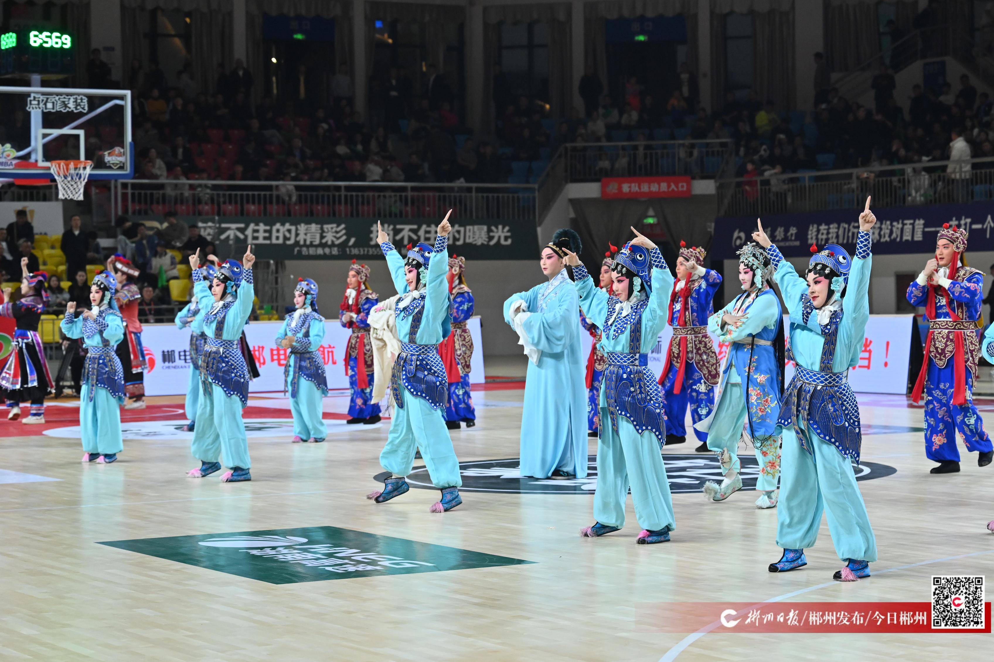 赛前暖场,湖南省昆剧团带来的看台秀《千年等一回》率先引爆全场。清丽精美的昆曲扮相与现代篮球赛场碰撞,传统韵味与青春激情交织,仿佛在诉说这座城市对文化与体育的双重热爱。紧接着,王仙小学啦啦队的《宝贝优先》活力四射,孩子们的笑脸像春日的阳光,感染着每一位观众;郴州市歌舞剧团的《我会一直顺》舞姿曼妙,将郴州人的乐观与坚韧融入舞步;飞扬舞蹈学校的《爱的主打歌》则用动感的节奏,把“爱”的主题直接唱进了观众心里。这些表演,不仅是赛前的预热,更是郴州人用自己的方式,为热爱的篮球事业加油。