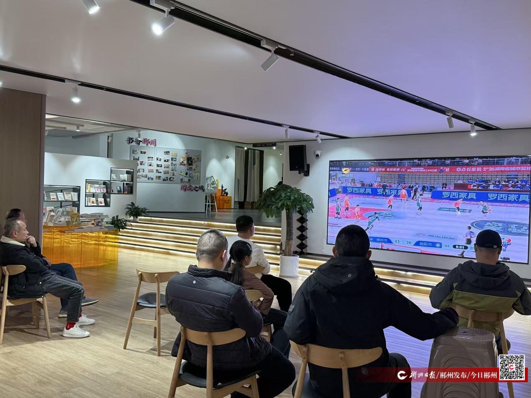 走进郴州书城,巨型屏幕前围坐着不少球迷,书香与呐喊声奇妙地交融,每当郴州队打出精彩配合,现场便爆发出阵阵喝彩。“Three!”市民文俊杰兴奋地摆出三分庆祝手势,双眼紧盯着屏幕,“这场比赛郴州队整体打得很好,很有态度,最后挡住了对方反扑的攻势!”