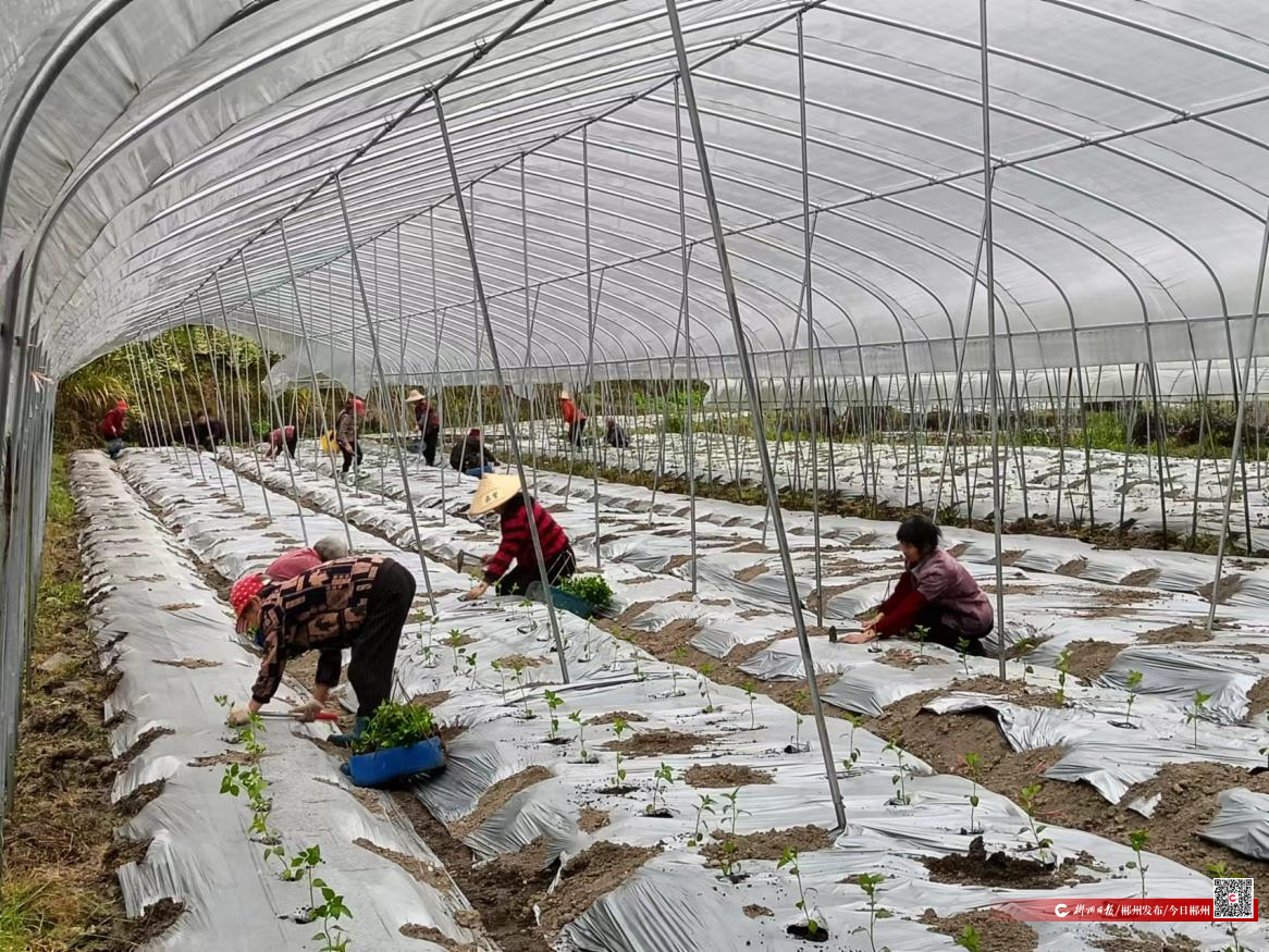 ▲菜农们正在移栽青辣椒苗。罗江涛 摄