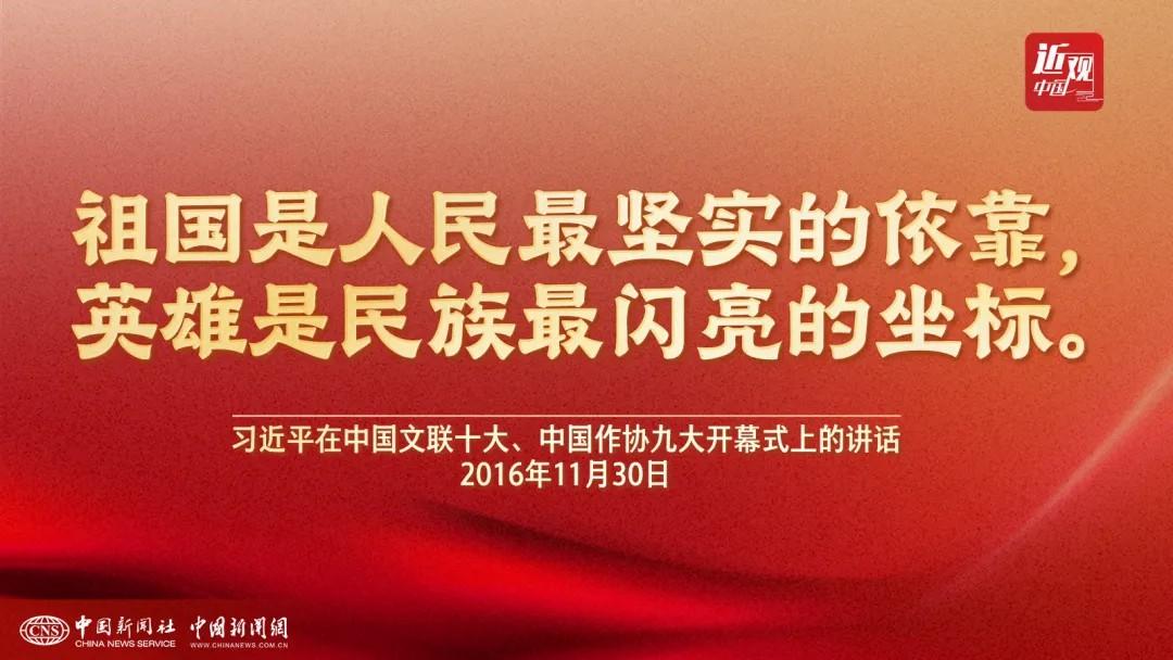 “祖国是人民最坚实的依靠,英雄是民族最闪亮的坐标。”中共中央总书记、国家主席、中央军委主席习近平曾在中国文联十大、中国作协九大开幕式上,这样阐述他心中的“英雄”。