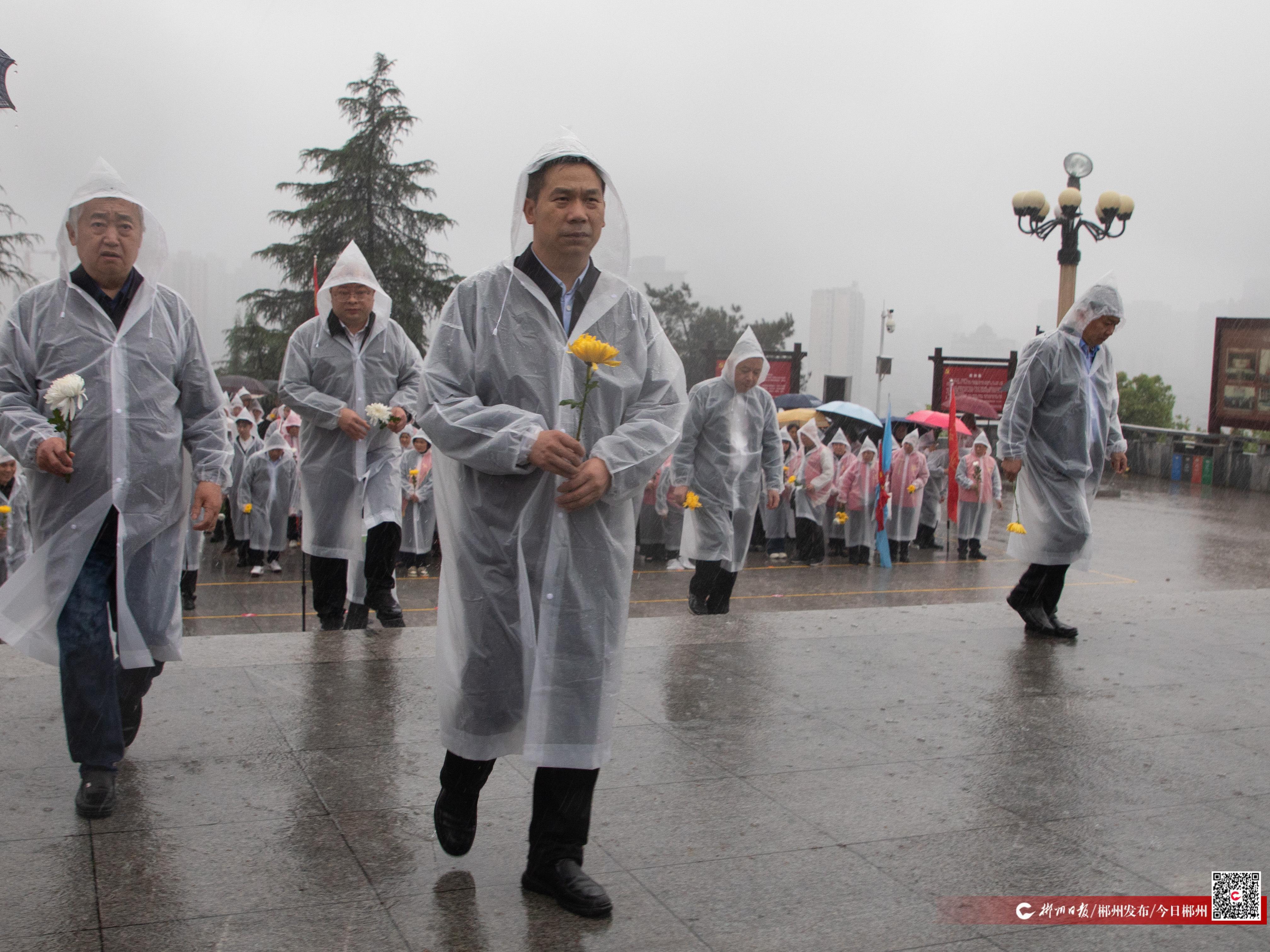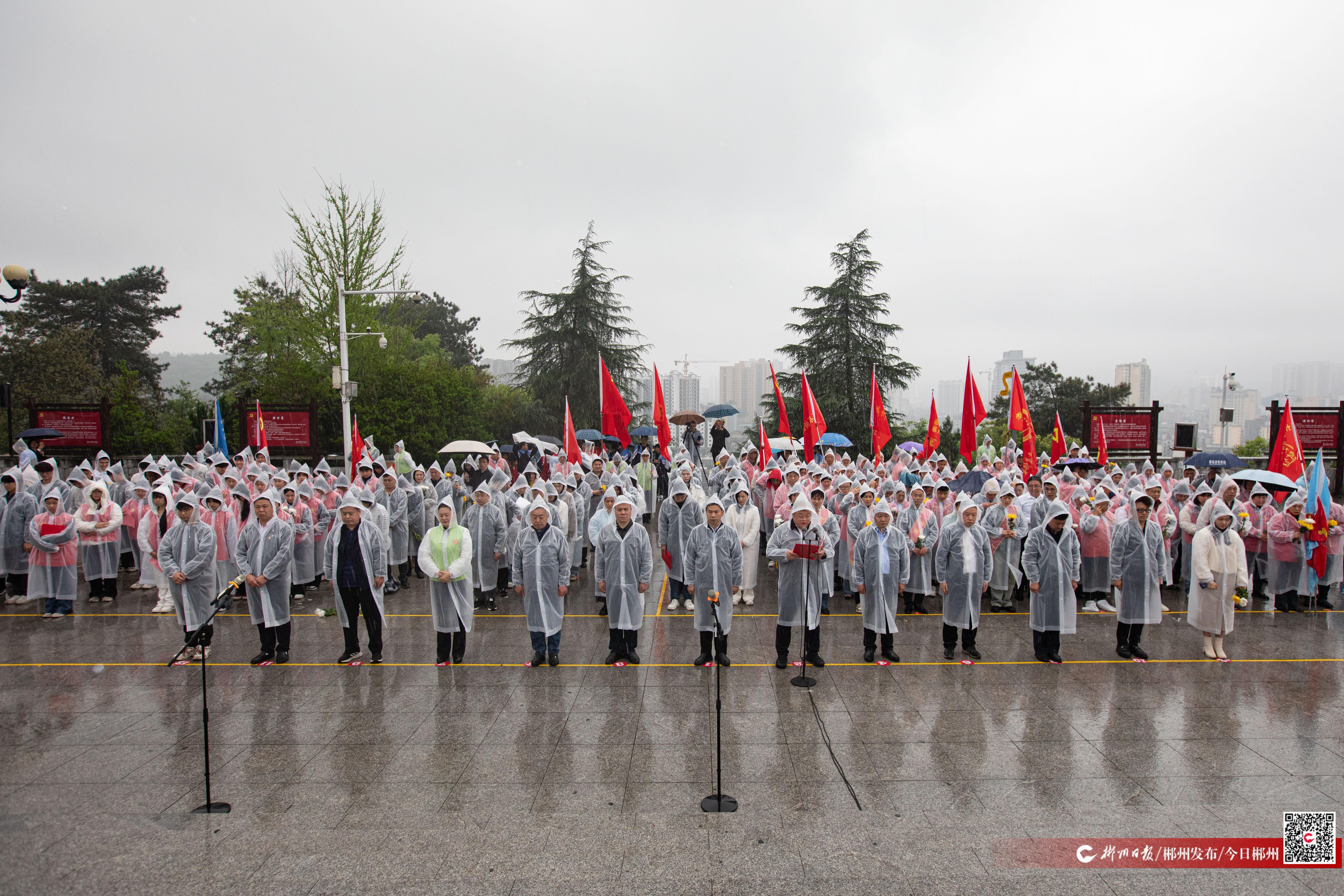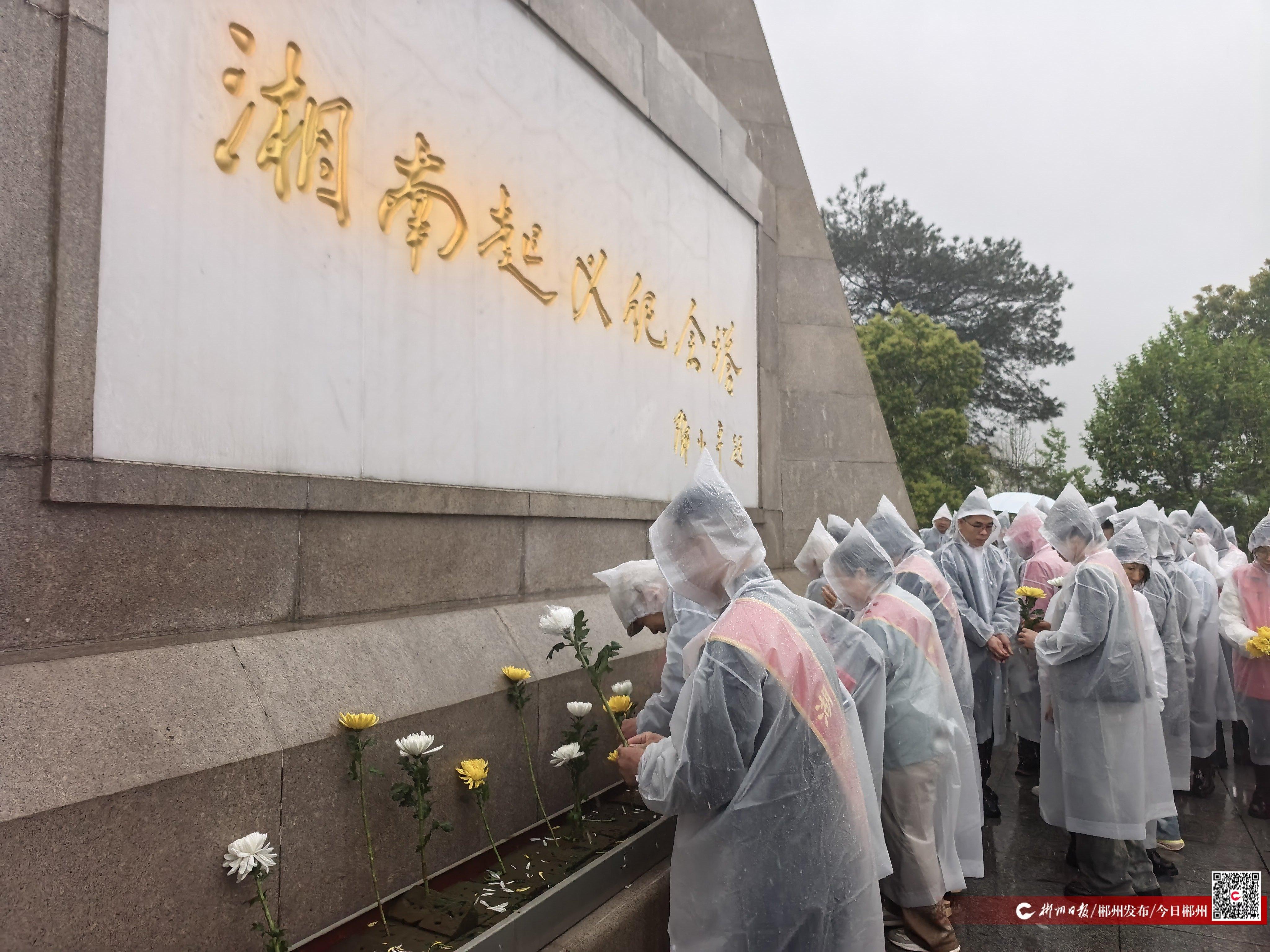 默哀毕,现场宣读了《郴州市2026年清明节文明祭扫倡议书》,倡导广大市民文明祭扫、绿色清明。在红色故事、好人故事微宣讲环节,老兵刘荣华讲述了战场上的亲身经历,郴州市好人故事宣讲团成员刘嫙子分享了“中国好人”彭子文的感人事迹。随后,全体学生齐声朗诵《致敬英雄》,参与活动人员依次瞻仰湘南起义纪念塔并敬献鲜花。