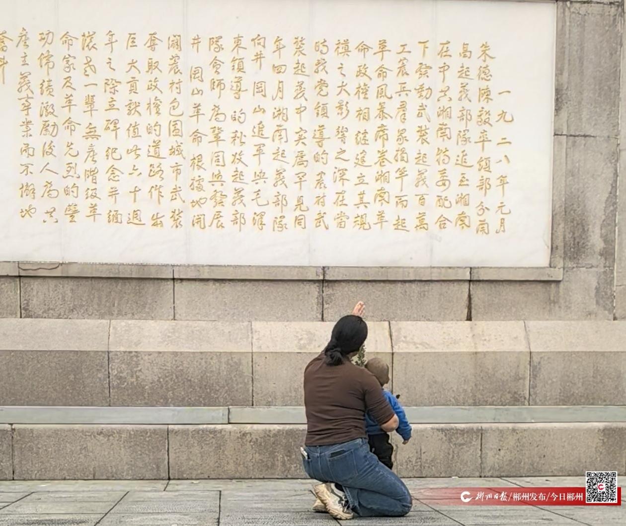 今天,她带着孩子来到湘南起义纪念塔,同样是为了“浸润”。