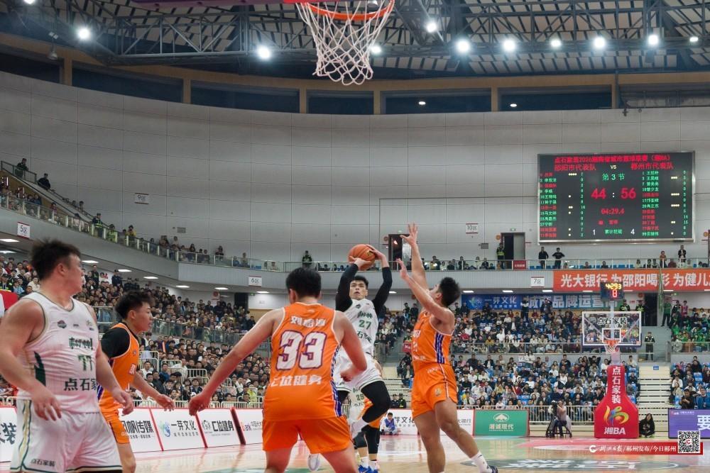 4月4日晚,2026湖南省城市篮球联赛(湘BA)常规赛第二轮焦点战在邵阳市体育中心火热开打,客场出征的郴州队顶住主队末节反扑,最终以81:72战胜邵阳队,拿下开赛两连胜。球员们每一次攻防都燃动赛场,尽显拼搏本色!
