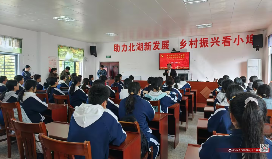 参观完小埠古村红军屋后,该校历史教师许贤方现场授课,紧扣郴州日报社和市教育局策划的“郴州市纪念红军长征胜利90周年大思政一体化实践活动”要求,讲授了一堂40分钟的“大思政课”《永不磨灭的红色足迹,历久弥新的长征精神》。