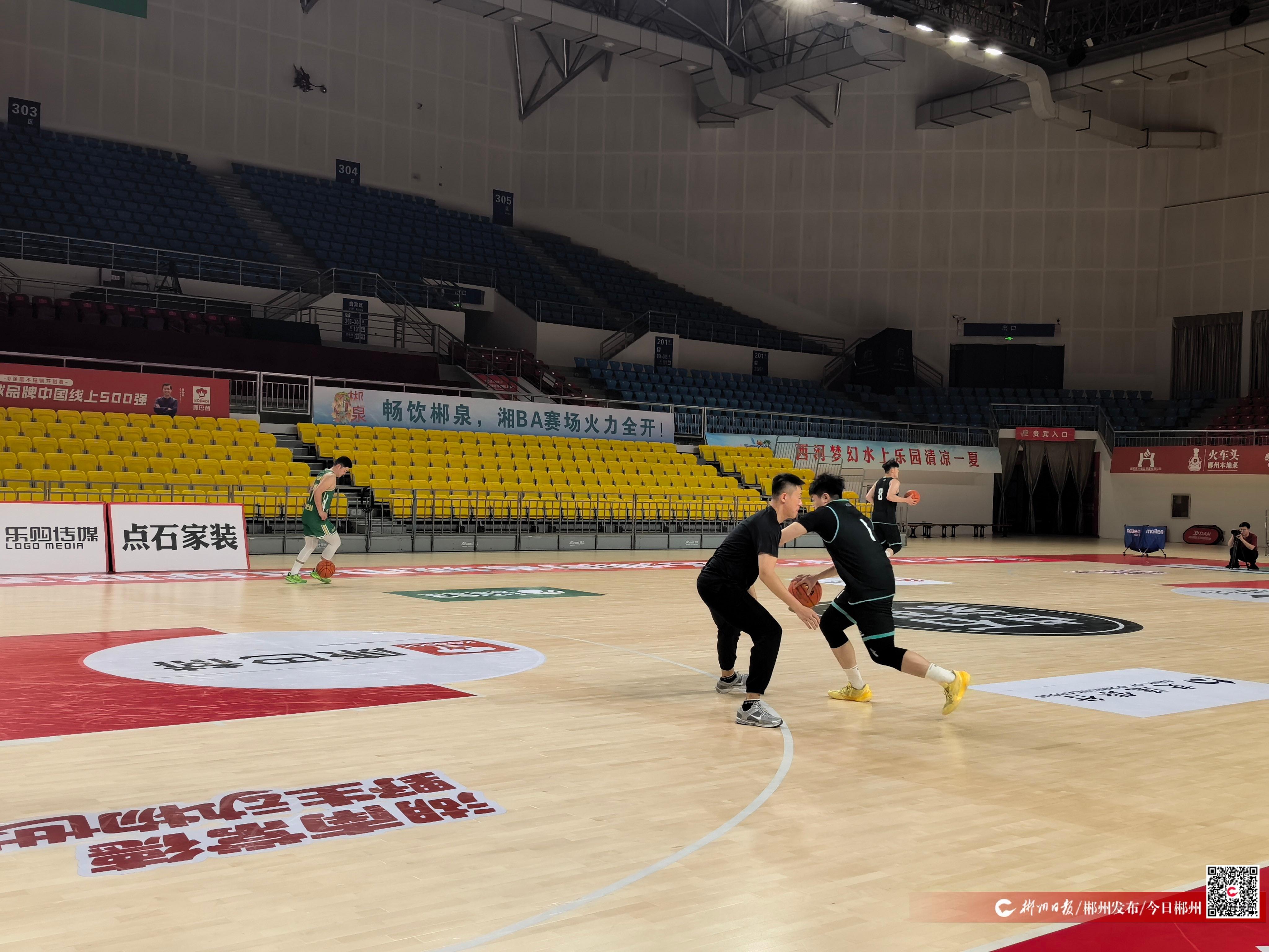 4月9日晚,郴州市体育馆内灯火通明,湘BA郴州队在此开展赛前备战训练。