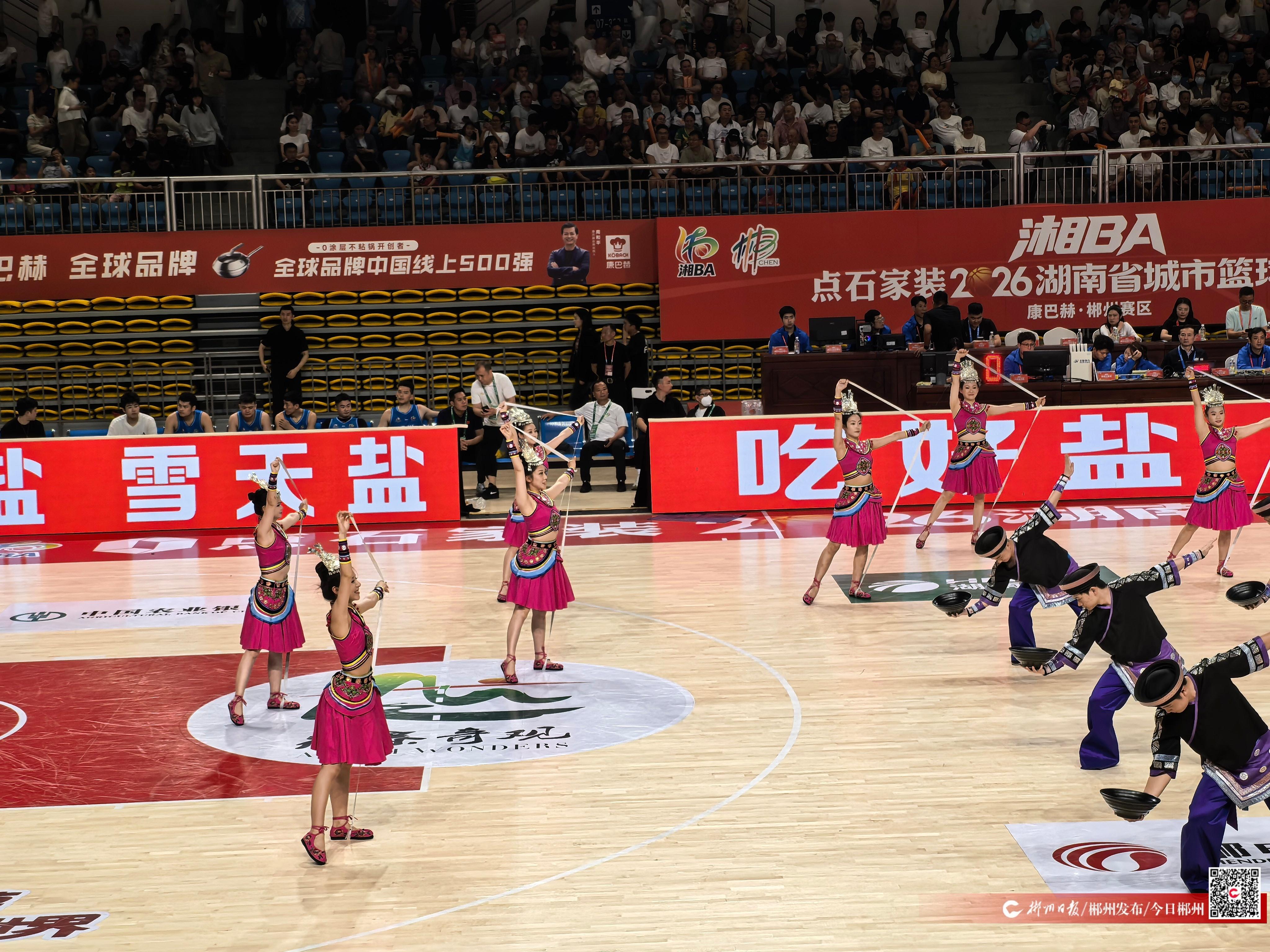 “浸米、磨浆、挤丝、蒸煮——这些汝城豆根的老手艺,竟被他们跳成了舞!”4月10日晚,湘BA联赛郴州队主场迎战永州队的比赛现场上演的《嗦出红火好日子》舞蹈表演惊艳全场,不少球迷为舞蹈点赞,举起手机记录这幕“舌尖上的非遗秀”。