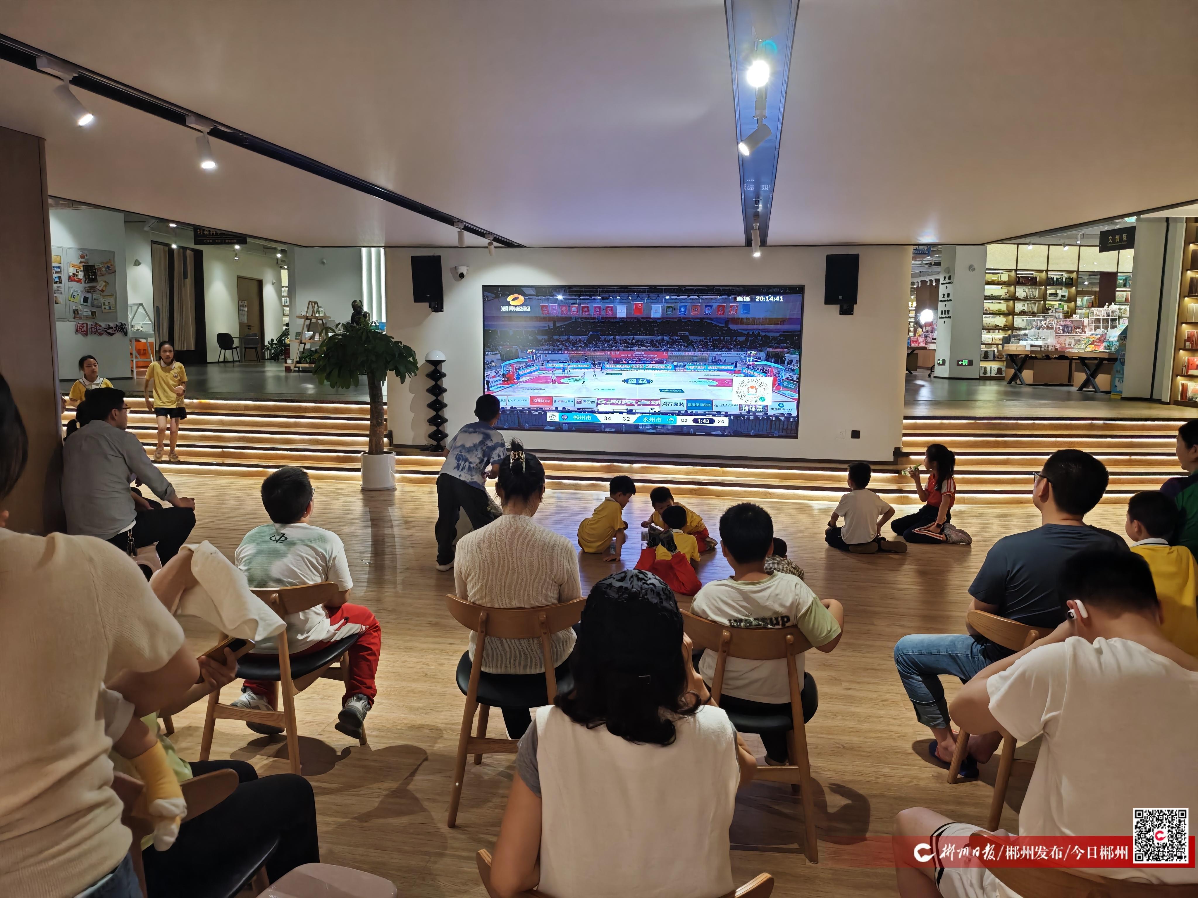 与热闹的北湖水月洲不同,郴州书城的观赛现场多了一份温馨与静谧。比赛开场后,不少市民陆续来到书城观赛区落座。紧张激烈的赛事氛围,不仅让成年人全神贯注,就连前来阅读的小朋友也被深深吸引。