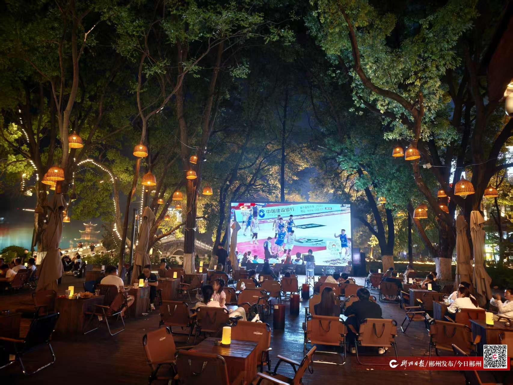 当天晚上,夜幕下的北湖水月洲灯火璀璨,高清大屏实时转播着赛场战况。不少市民晚饭后特意赶来,或坐或站,目光紧紧锁定屏幕。每一次进攻、每一记投篮,都牵动着大家的心弦,欢呼声、加油声此起彼伏,洋溢着浓浓的家乡情怀。