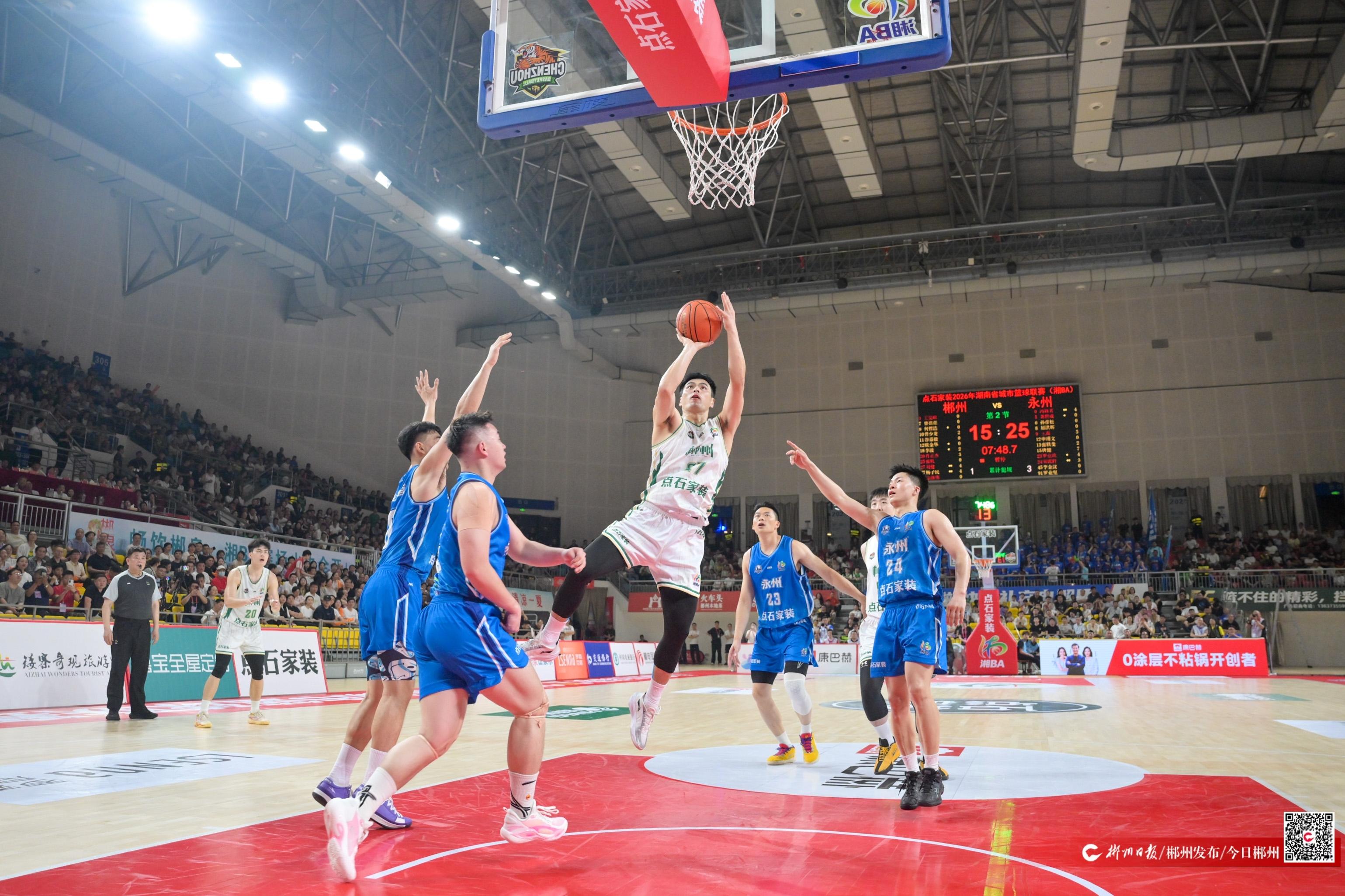 4月10日晚,2026湖南省城市篮球联赛(湘BA)常规赛第三轮战罢,尽管开局比分落后,但主场作战的郴州队奋起直追,扳平比分!强势反超,步步紧逼,一路扩大优势,最终以77:64击败永州队,拿下开赛三连胜。球员们的每一次攻防都是用意志品质对抗逆境,用拼搏铸就胜利,这就是永不言弃的郴州力量!