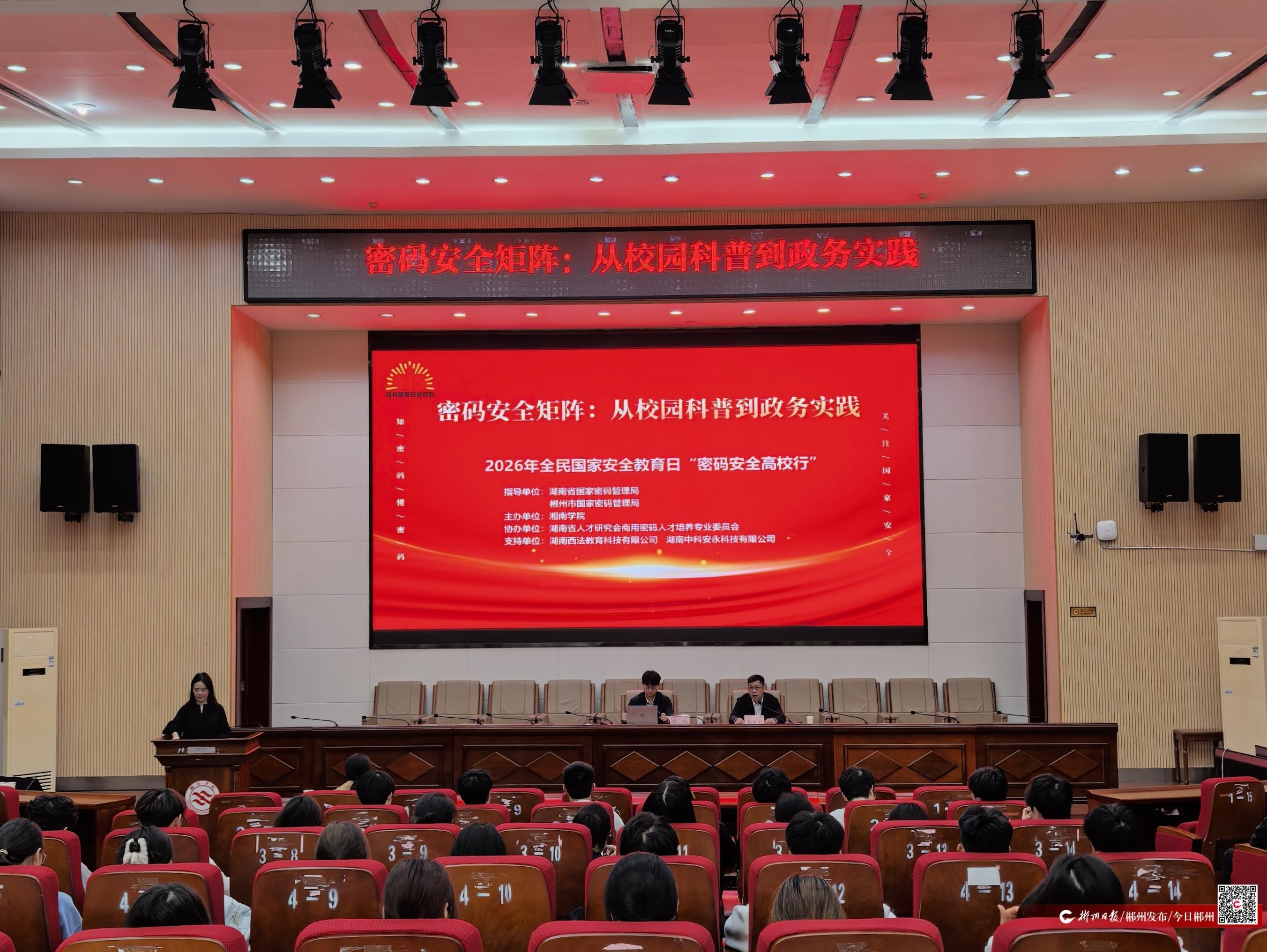 本次活动以“密码安全矩阵:从校园科普到政务实践”为主题,由湖南省国家密码管理局、郴州市国家密码管理局联合指导,湘南学院主办。活动聚焦密码安全,面向全校师生普及密码安全知识,搭建校园密码科普与产业人才培养桥梁,推动密码安全融入校园学业、对接未来职业、赋能地方产业。