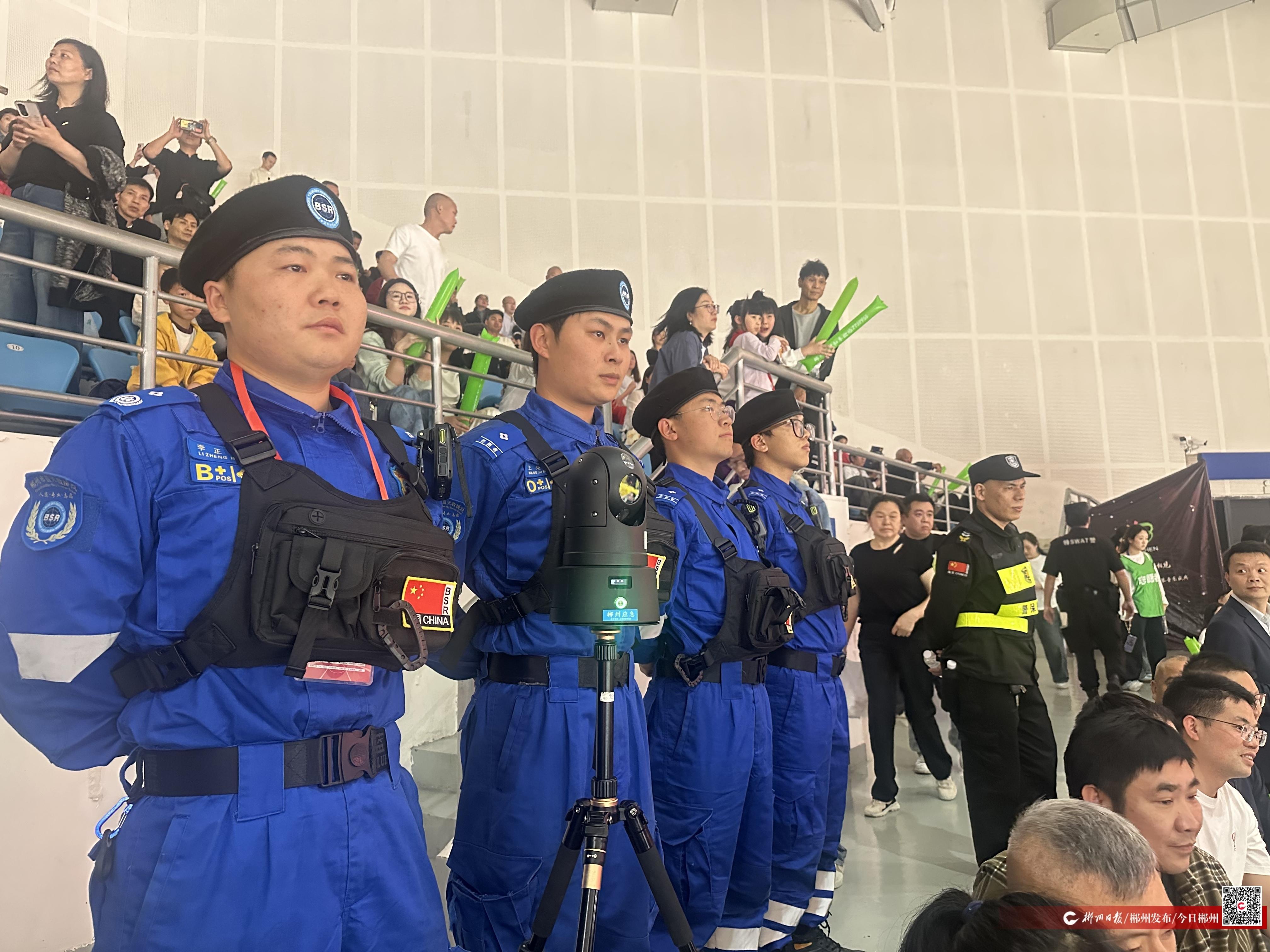 4月17日,2026年湘BA郴州队主场迎战劲敌衡阳队。在激烈的对决背后,一支由郴州市蓝天救援队6名队员组成的应急保障力量,借助数字化通信设备守护赛场安全。