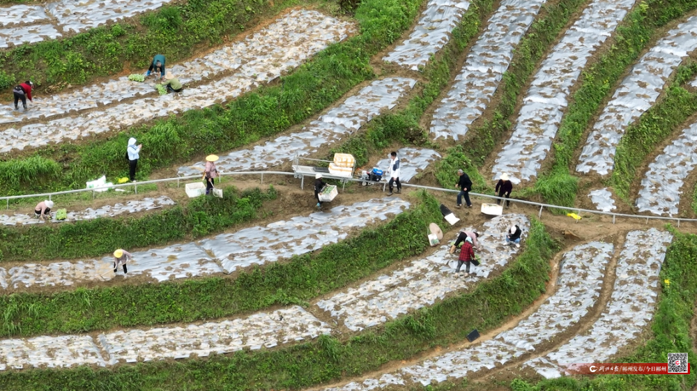 ▲“小火车”将菜苗运给村民栽种。(黄莎娜 摄)