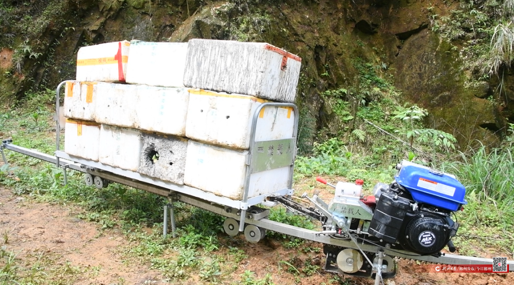 曾经山区地块分散、山路崎岖,物资依靠人力搬运,一天也运不上一亩地。现在单轨“小火车”运输,单次载量超千斤,直达各山头定植点。