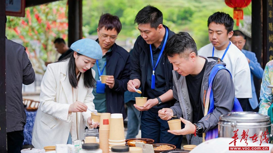 网络名人品尝坪朗豆腐。胡鑫 摄