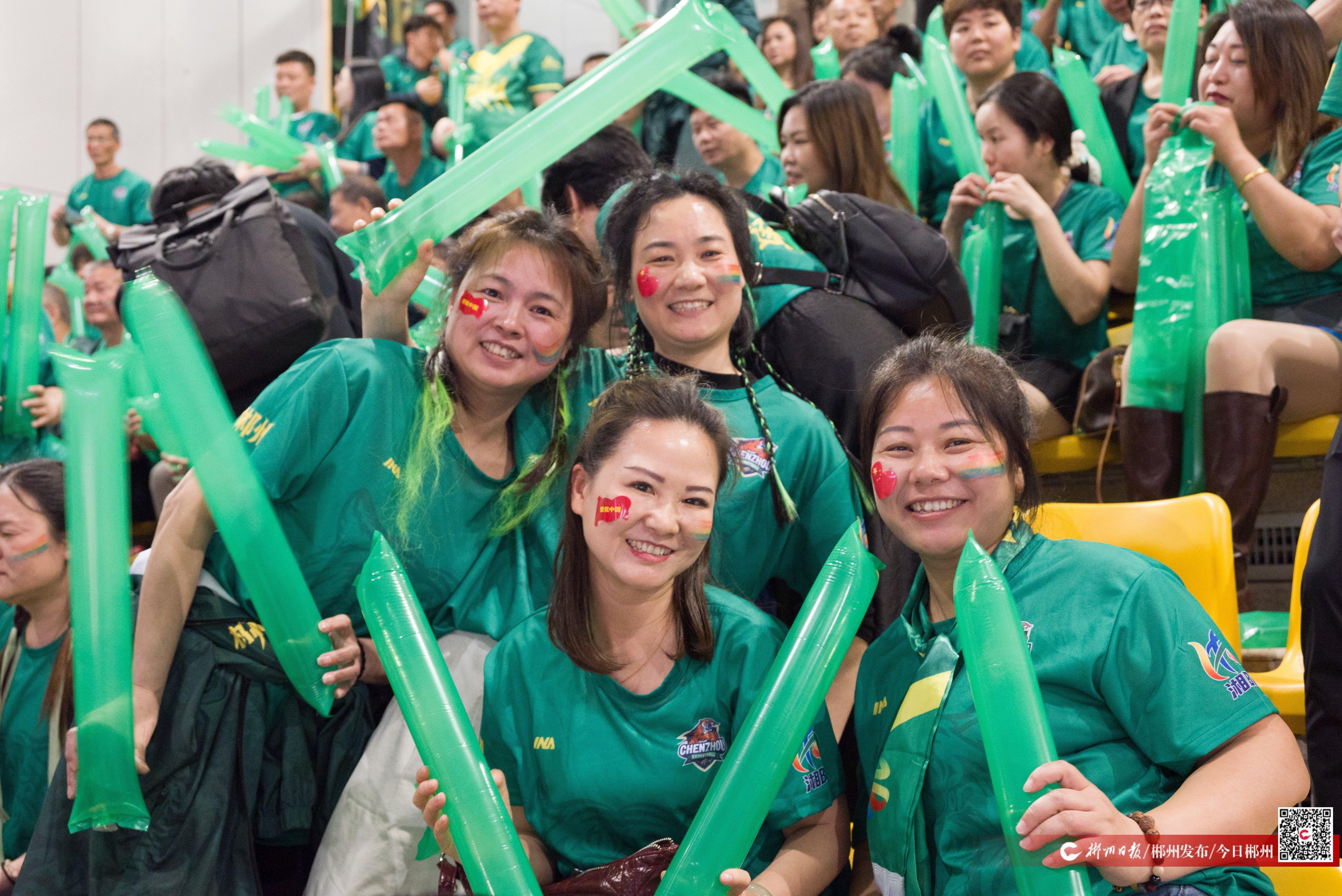 当天下午,郴州球迷们身着统一的绿色助威服,率先集结在体育馆旁的渌江广场。大家挥舞着印有“郴州”字样的战旗,整齐的口号声、助威声此起彼伏,用饱满的热情为即将登场的球队提前造势,也让赛场周边提前感受到了来自郴州的体育热情。“我们都很喜欢赛场的氛围,郴州队加油!”自湘BA开赛以来,满头银发的李金禾与姐妹们一场不落,每场都来到现场给郴州队加油。