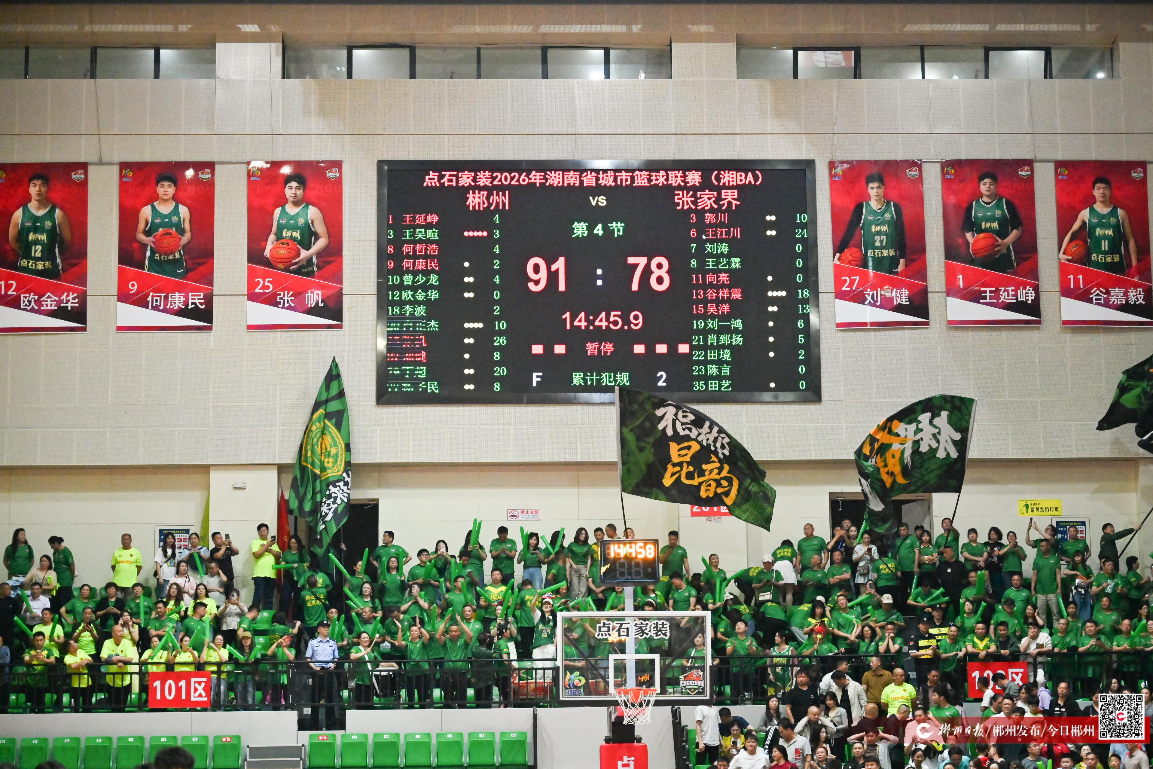 4月26日晚,湖南省城市篮球联赛(湘BA)常规赛第七轮在郴州主场展开激烈角逐,郴州队凭借第三节的强势表现,以91:78有惊无险击败张家界队,延续主场不败纪录。
