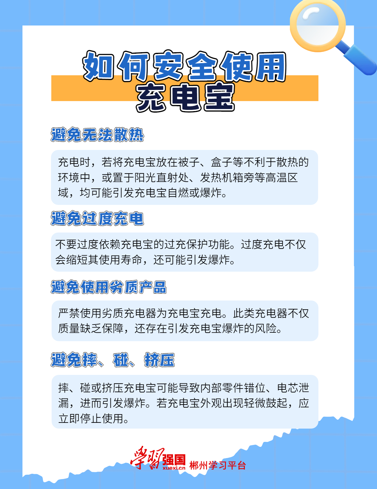海报丨科普知识:如何安全使用充电宝