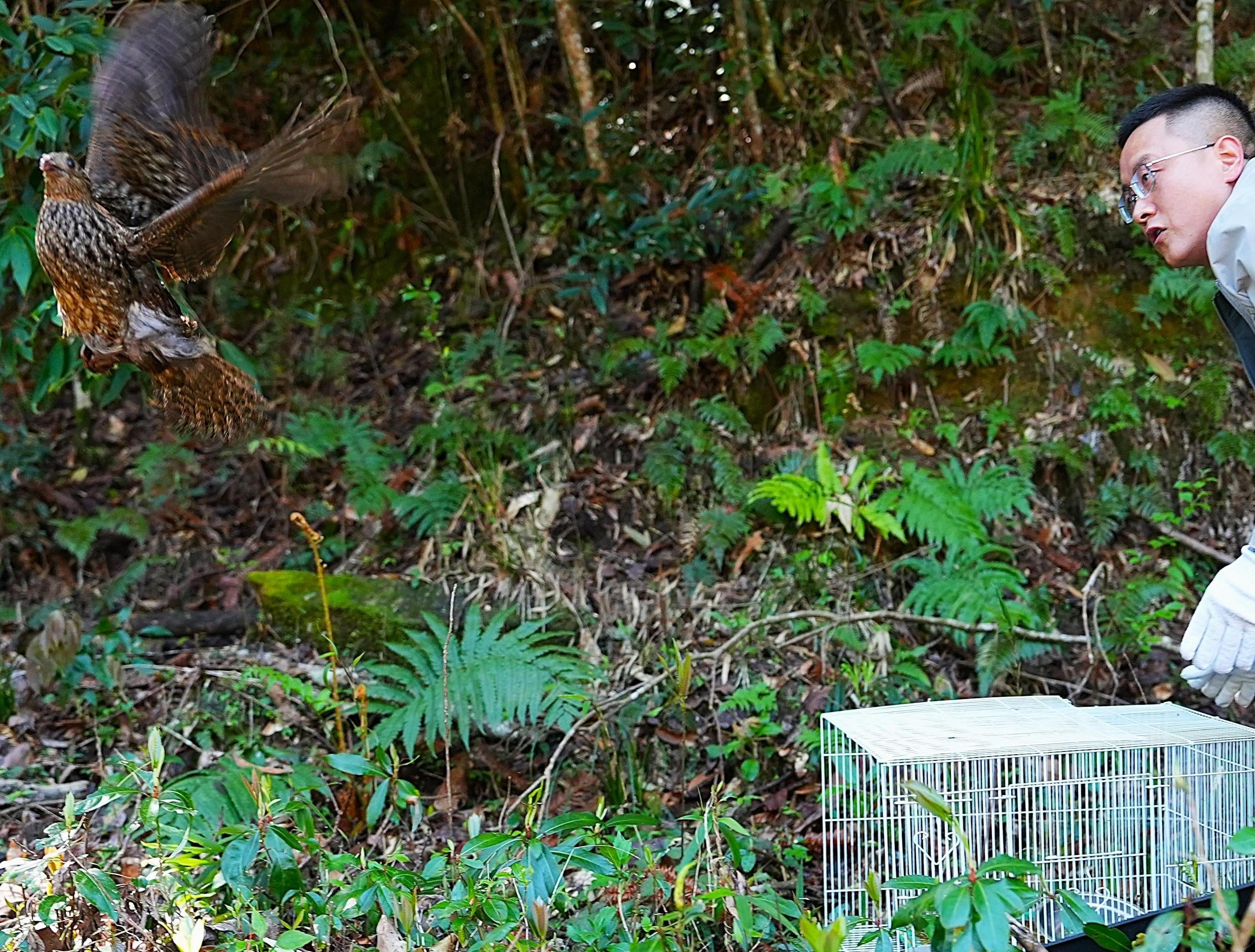 “鸟中大熊猫”雌性黄腹角雉康复归山